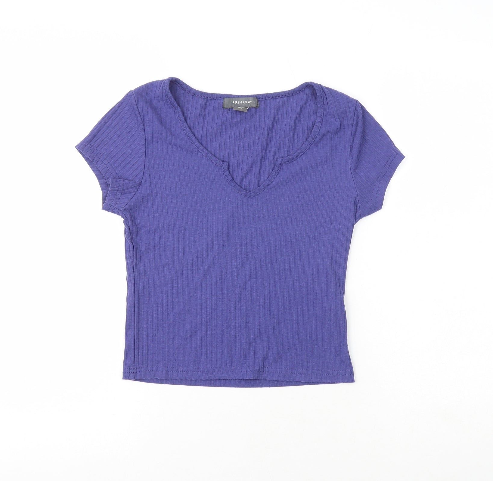 Womens Purple Polyester Basic T-Shirt Size S V-Neck