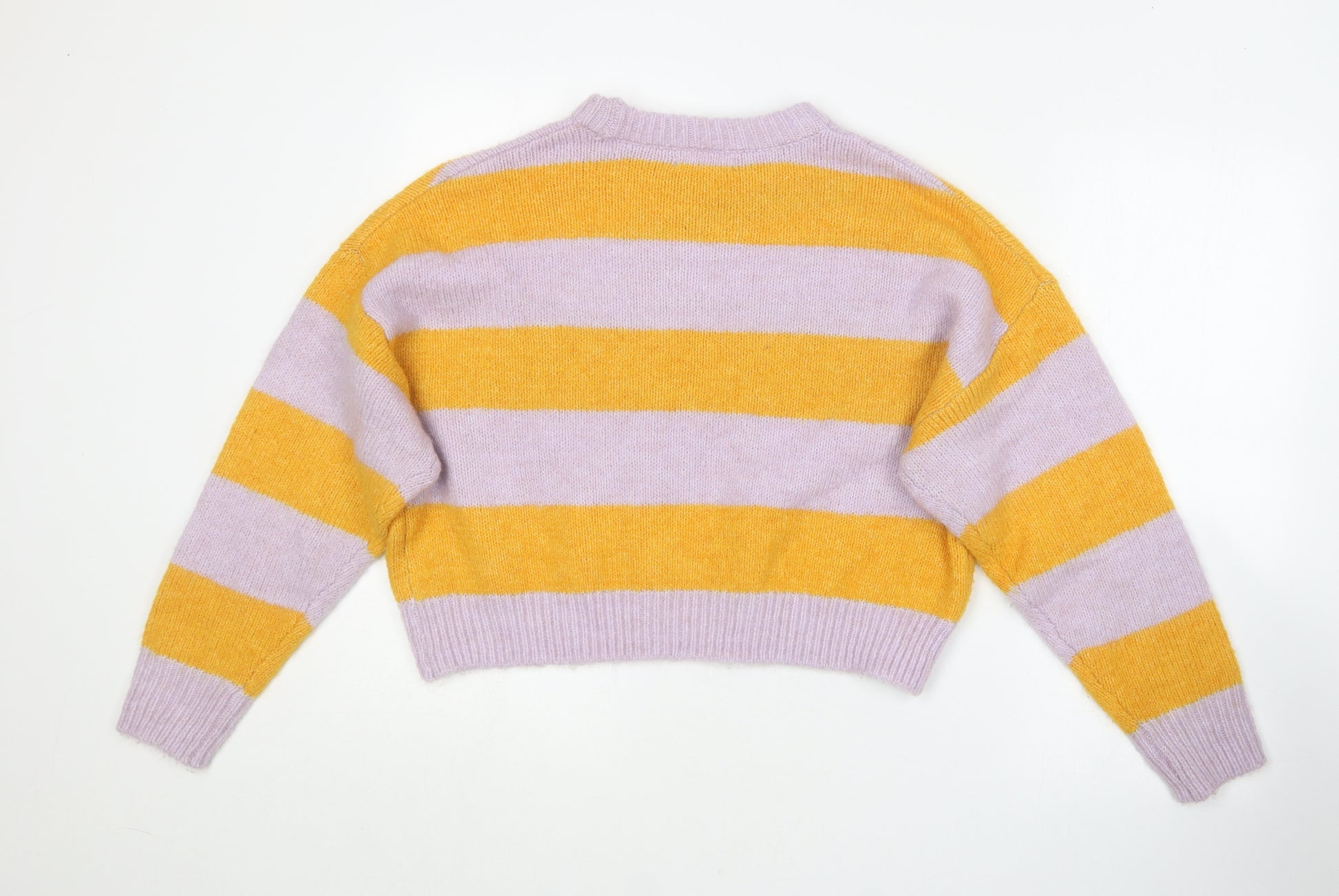 Womens Purple Round Neck Striped Polyester Pullover Jumper Size M