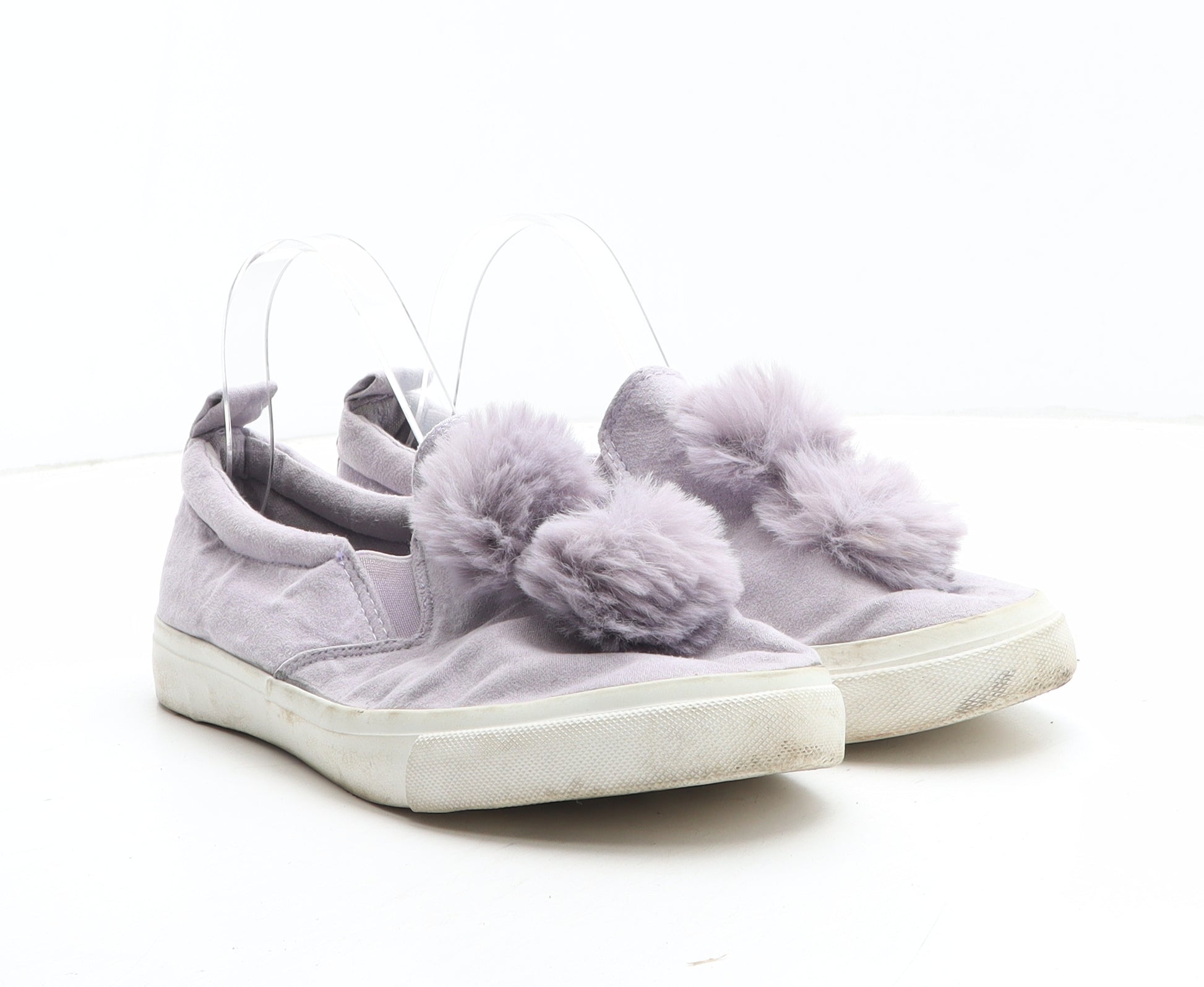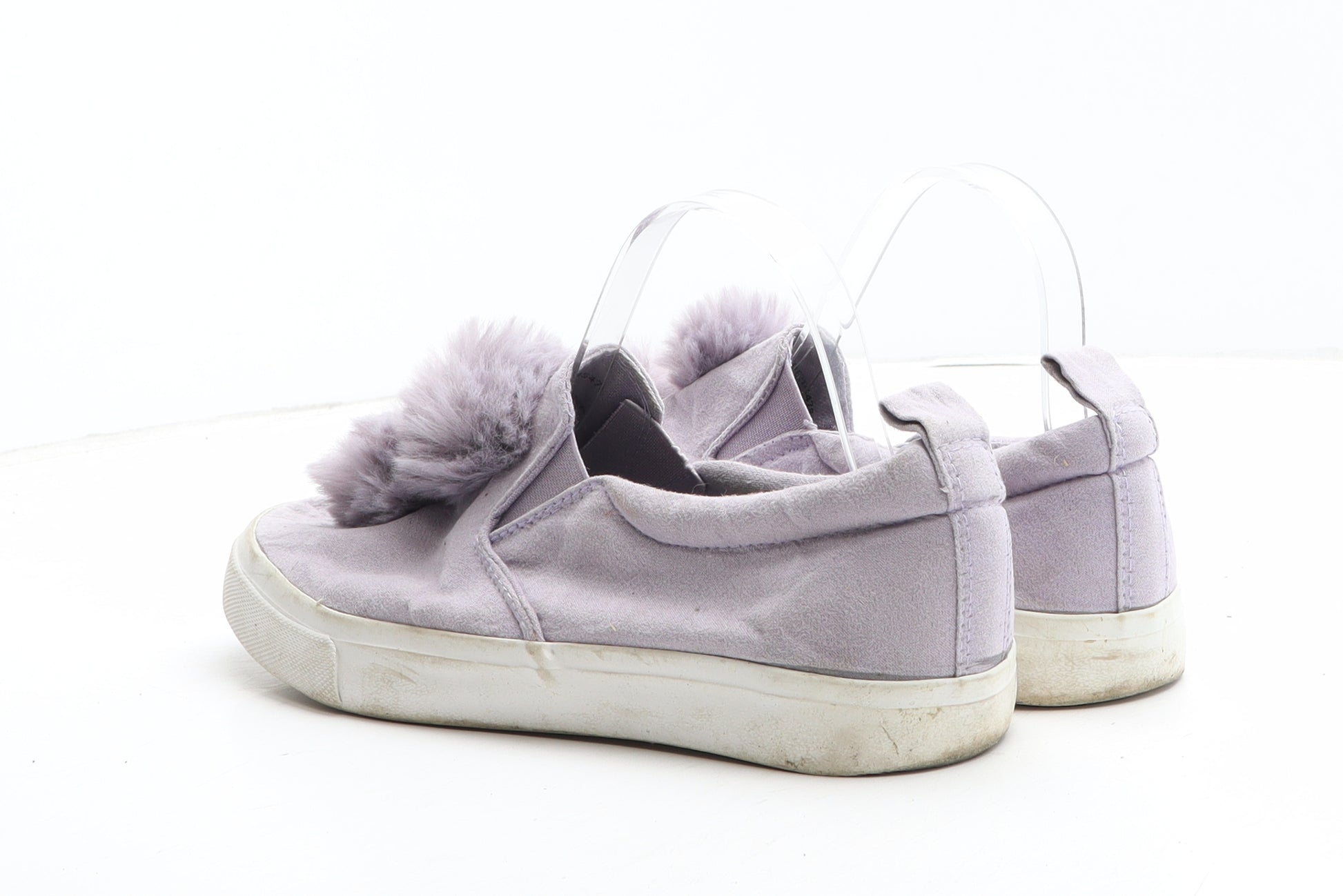 Womens Purple Synthetic Slip On Casual UK - Pom Pom Detail
