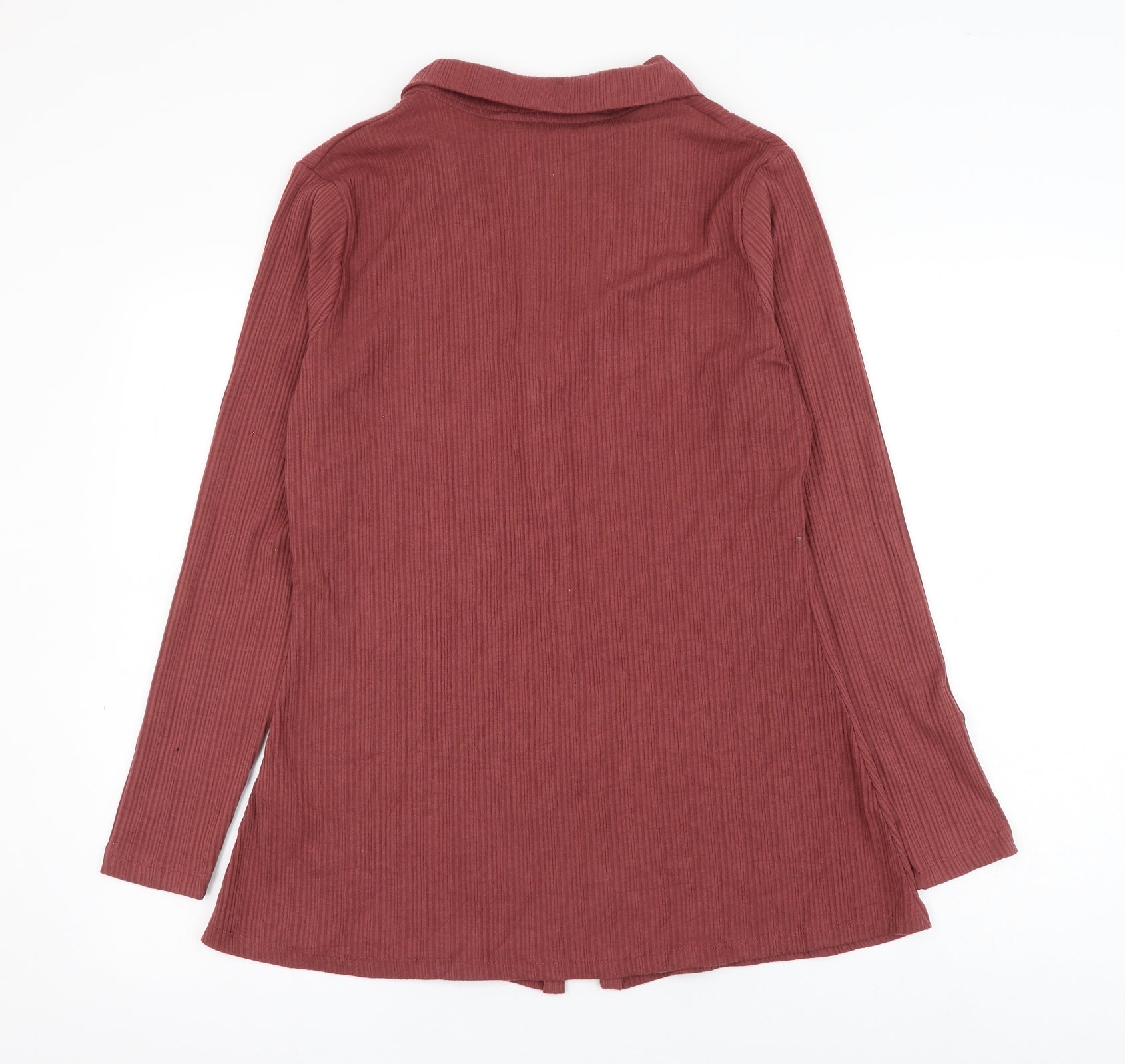 Womens Red Polyester Basic Blouse Size 14 Collared