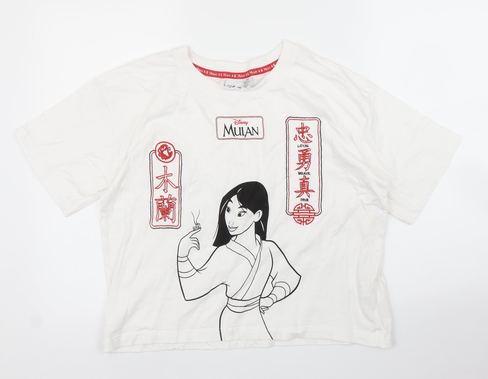 Womens White Basic T-Shirt Size S - Disney, Mulan