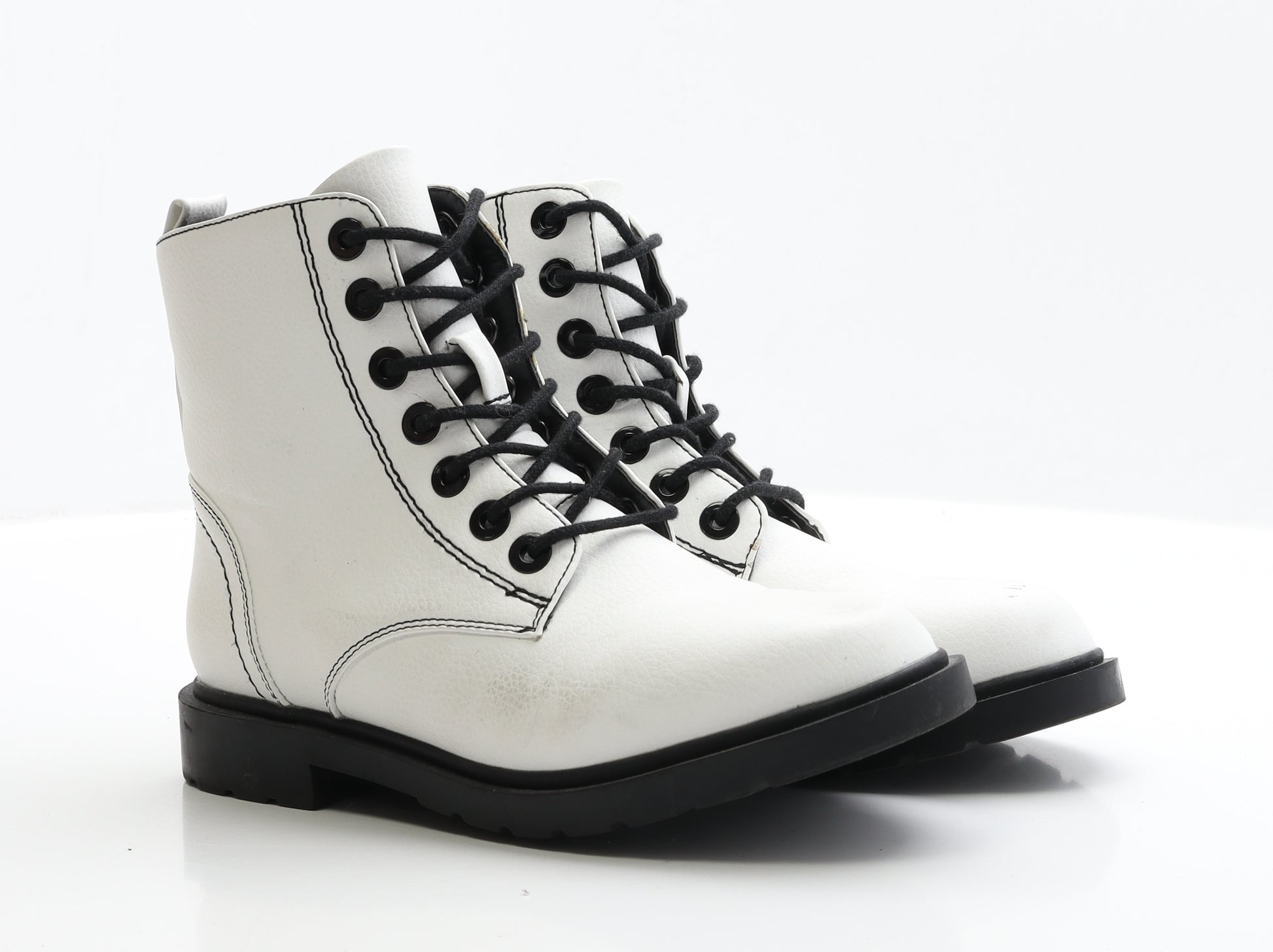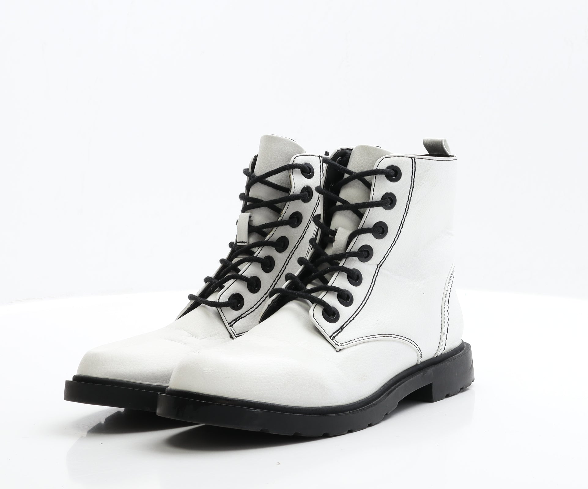 Womens White Faux Leather Biker Boot UK 5 EUR 38