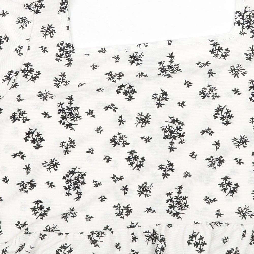 Womens White Floral Polyester Cropped Blouse Size M Square Neck