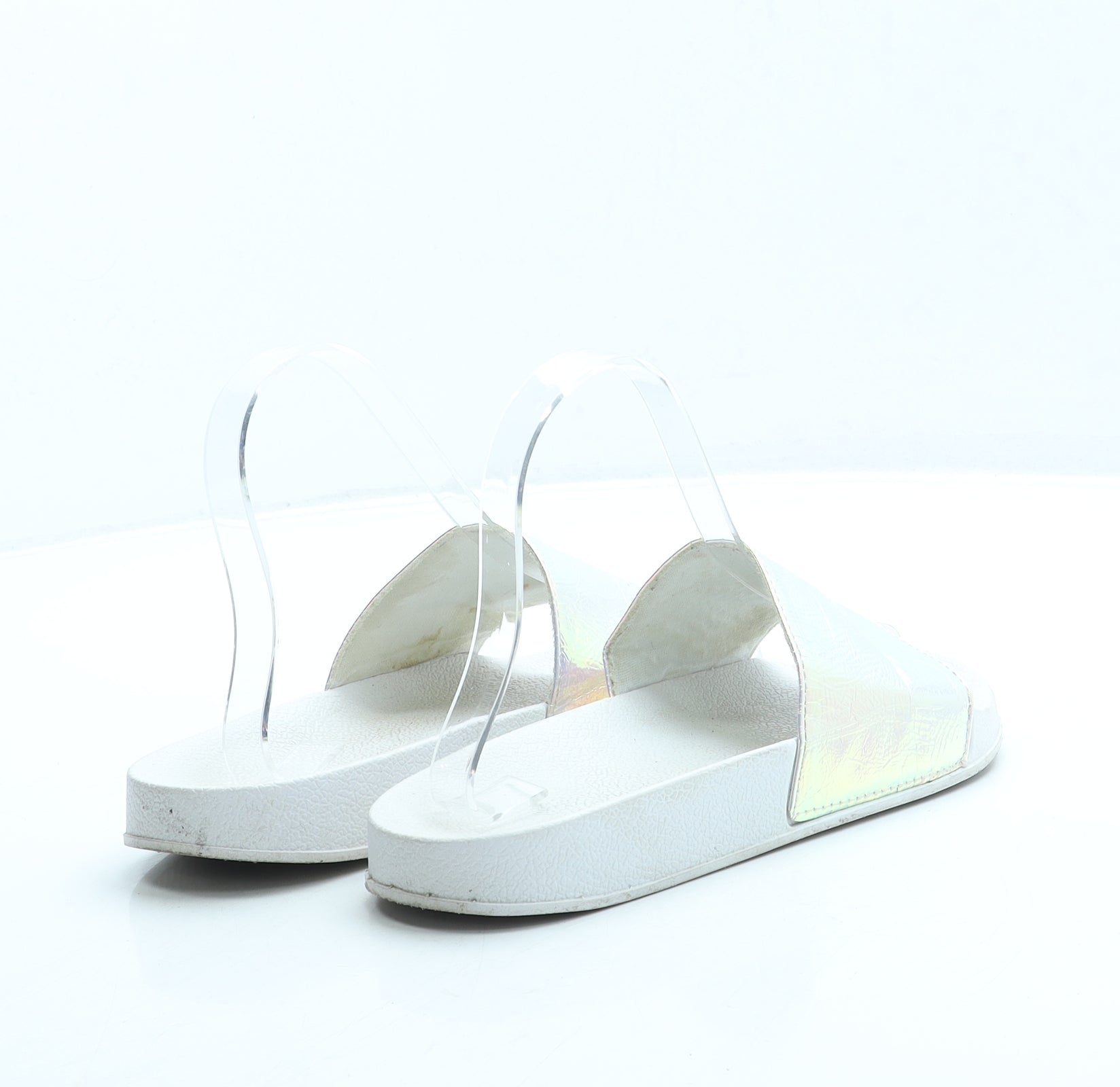 Womens White Polyester Slider Sandal UK 4 37 - Holographic