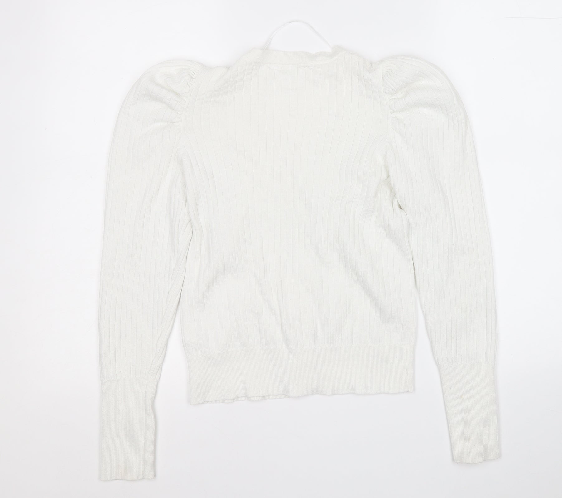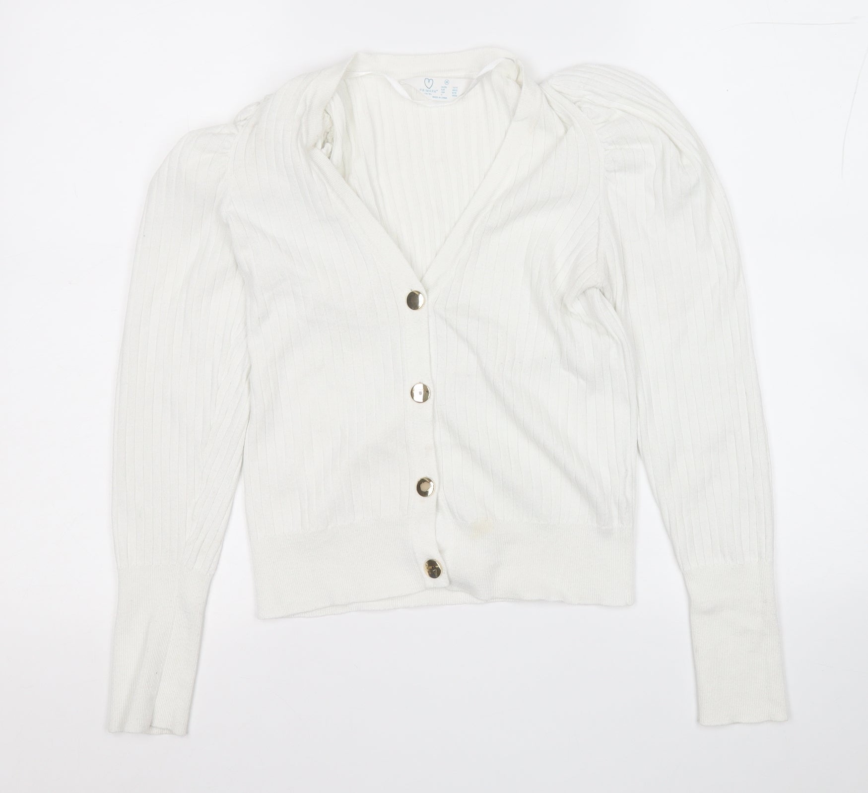 Womens White V-Neck Polyester Cardigan Jumper Size 12