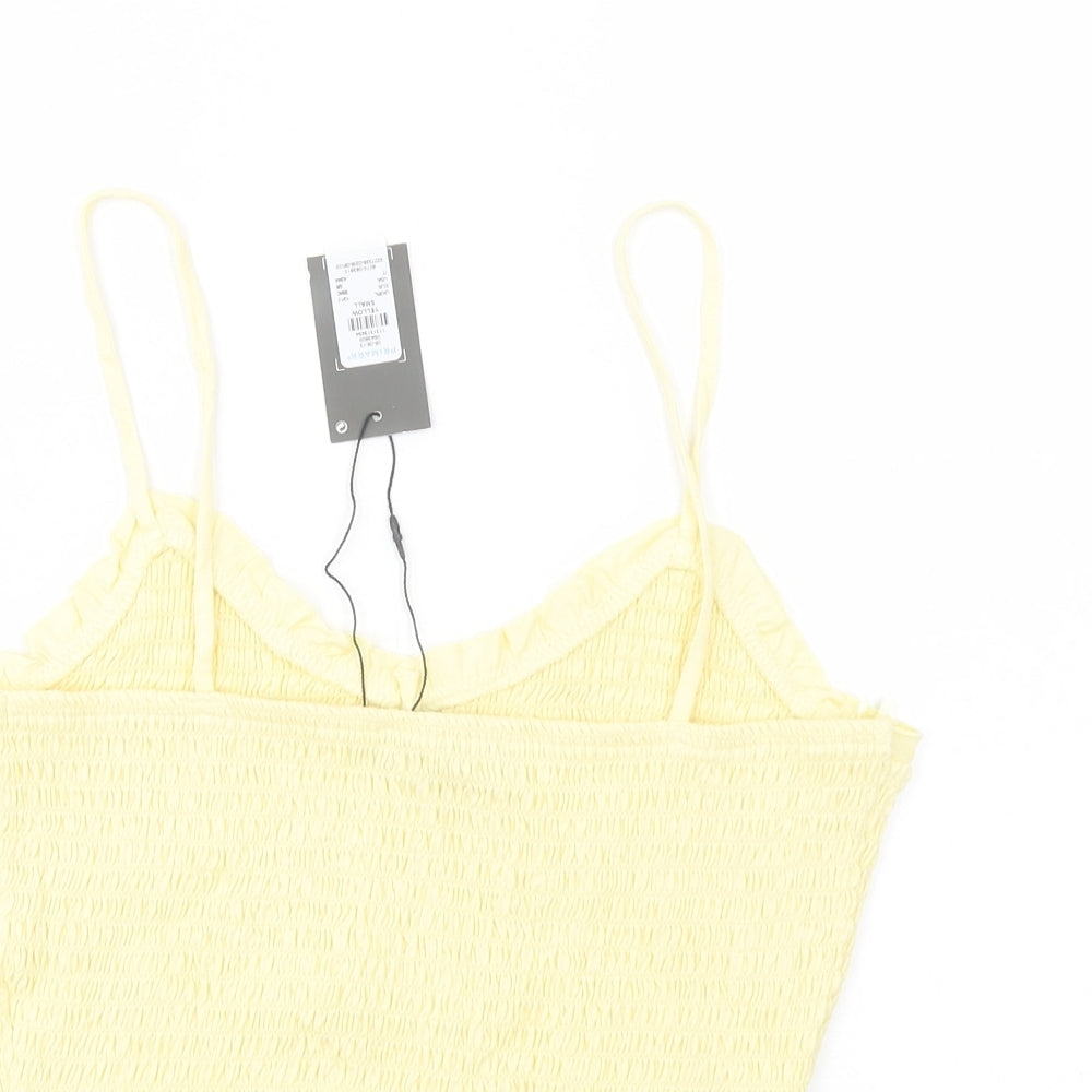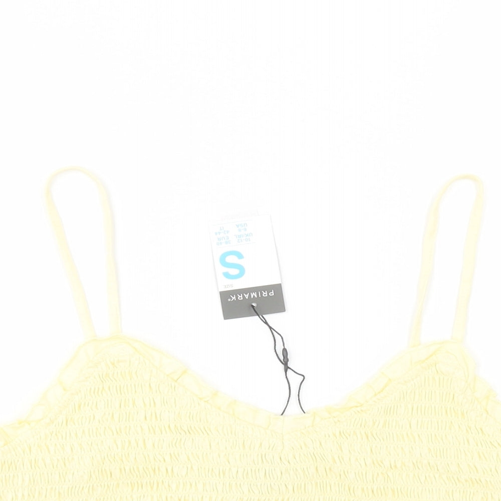 Womens Yellow Cotton Cropped Tank Size S V-Neck