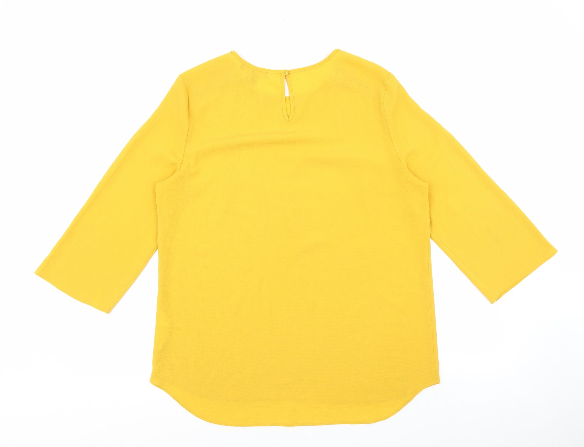 Womens Yellow Polyester Basic Blouse Size 14 Round Neck - Zip Shoulder