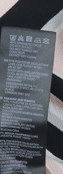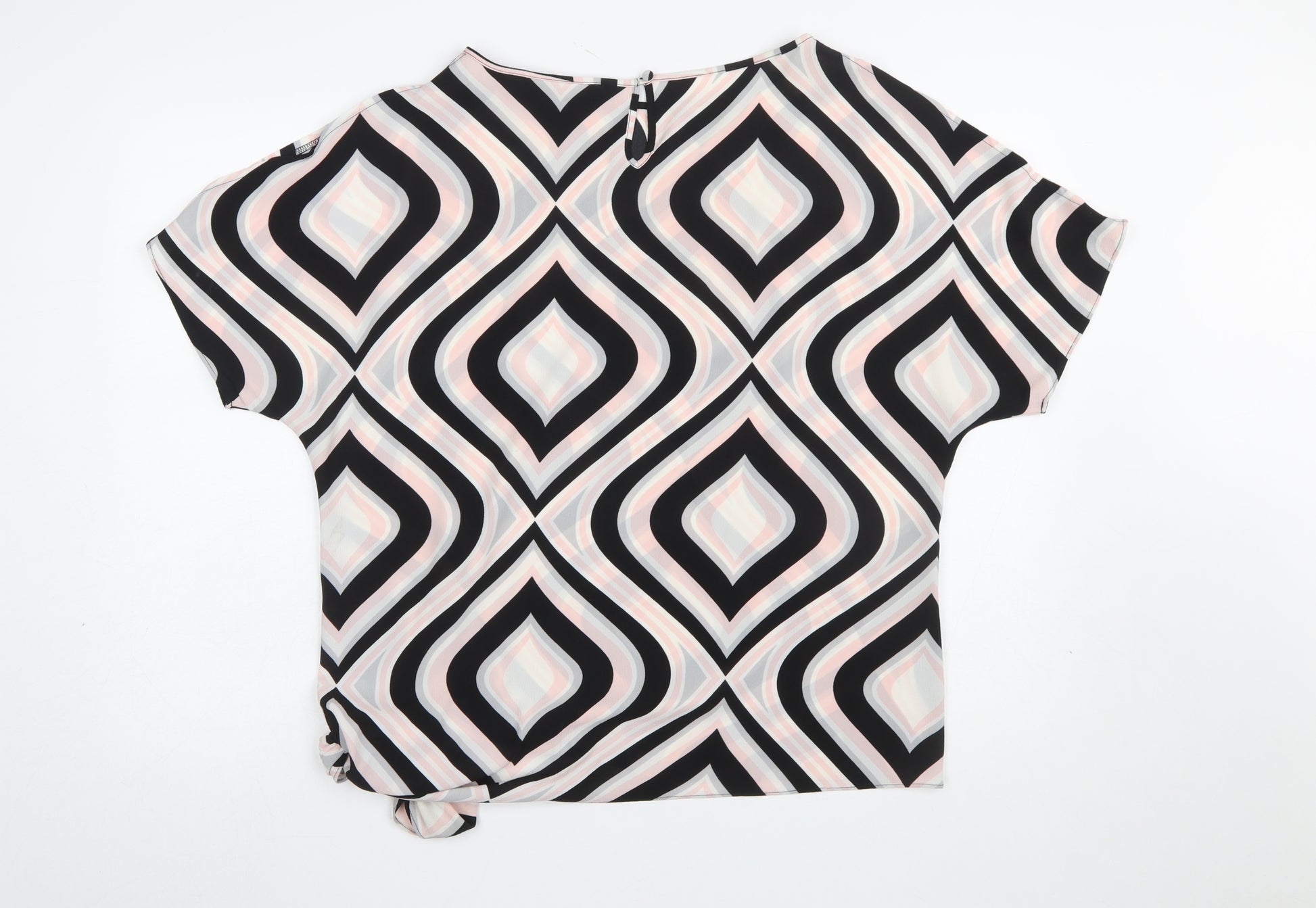 Add a bold statement piece to your wardrobe with this stylish Principles by Ben de Lisi women's geometric tunic blouse. Designed in a striking multicoloured pattern of black, white and soft pastel tones, the blouse delivers a modern, art-inspired aesthetic that's perfect for both casual and workwear settings. Crafted with a flattering boat neckline and short sleeves, it offers a comfortable and contemporary silhouette that complements a range of body shapes. Made from a soft, lightweight woven blend of 97% polyester and 3% elastane, it promises ease of movement and effortless wear throughout the day. The side tie accent at the hem adds a feminine touch while subtly shaping the waist for a flattering fit. Versatile enough for spring and summer wear, it pairs beautifully with jeans or tailored trousers for a polished, refined look. Easy to care for, this blouse is machine washable and quick drying, making it a practical yet fashionable wardrobe choice. The garment is presented in excellent condition, showing minimal signs of use and no visible flaws. Ideal for women who want a vibrant yet sophisticated top that can transition smoothly from office environments to weekend outings, this Principles by Ben de Lisi blouse captures effortless chic with a retro twist. A timeless addition to your collection, perfect for those who appreciate design-led pieces with everyday versatility.