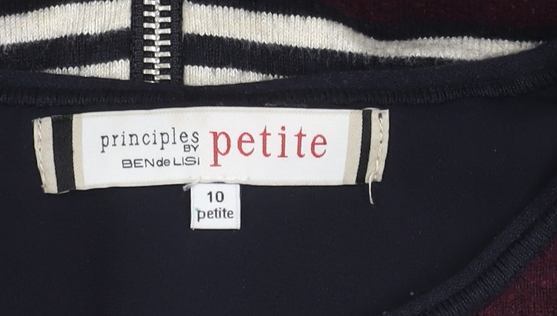 Explore a seamless blend of fashion and comfort with the Principles by Ben de Lisi Women's Multicoloured Striped Cardigan, designed for the contemporary woman. This piece showcases a playful striped pattern in a sophisticated palette, making it a versatile addition to your autumn wardrobe. Crafted for women, it features a round neckline and long sleeves, offering both comfort and style. Enjoy the ease of layering with the full zip accent, perfect for adapting to variable temperatures. This cardigan combines casual elegance with practicality, boasting a regular fit that flatters a variety of body shapes, while maintaining a relaxed feel essential for all-day wear.The cardigan, tailored in a petite size 10, ensures the right fit for petite frames, enhancing your silhouette with every wear. It has a machine washable fabric, making it easy to maintain its fresh look season after season. Although it is gently used with slight wear, it maintains its charm and character, promising endless style options. Whether you're dressing for a laid-back coffee date or a casual day at the office, its versatile nature pairs effortlessly with jeans, skirts, or tailored trousers.Transform your everyday look with this stylish knit made for modern women who appreciate a touch of flair and functionality in their wardrobe. Ideal for any casual occasion, this cardigan is the perfect blend of style and ease, ready to elevate your autumn ensemble. Invest in this chic, nearly new piece at an excellent price, resonating with the quality you expect from Ben de Lisi’s collection.