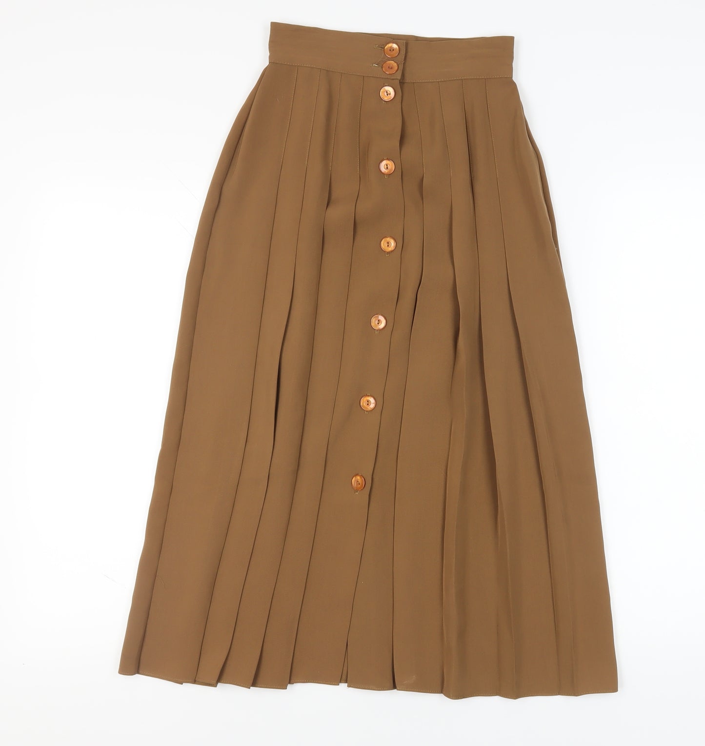 Elevate your wardrobe with this chic Principles Petite brown pleated midi skirt, a perfect choice for any fashion-forward woman. This elegant skirt features a flattering high rise with a secure button closure down the front, offering a stylish silhouette that's both timeless and versatile. Crafted for casual occasions, its pleated design adds texture and movement, ensuring you look fabulous whether you're heading to a brunch or a casual day out. The rich brown tone complements a variety of tops, making it easy to pair with your favourite blouses or sweaters. Though it's in very good condition, minor stains are present, reflecting gentle usage but not detracting from its overall appeal. Sold at an appealing price, it’s a must-have item for those looking to add quality and style to their petite wardrobe. Don't miss out on this opportunity to own a piece that combines comfort with fashion effortlessly.