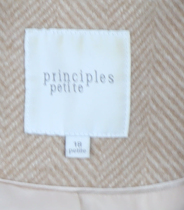 Step into timeless sophistication with this elegant beige long overcoat from Principles Petite. Perfectly tailored for the petite woman, this coat is crafted from a soft herringbone-patterned twill fabric, exuding understated style ideal for both smart and casual settings. The neutral beige tone makes it versatile for autumn and winter wardrobes, easily pairing with office outfits or weekend ensembles. Made from 100% polyester, the coat is durable, comfortable, and easy to maintain, ensuring lasting wear without compromising on quality. The fully lined interior, also in smooth polyester, adds extra comfort, making it suitable for cooler weather. Styled with a notched collar and single-breasted button fastening, this overcoat flatters the silhouette while maintaining a classic appearance. Front flap pockets add functionality and a polished touch. Designed with a long-line cut, it offers a refined aesthetic while keeping you warm and stylish. Whether layered over a knit dress or tailored trousers, it complements every look seamlessly. The piece reflects Principles' reputation for creating elegant yet practical fashion essentials for modern women. Ideal for business, casual or day-to-day occasions, this coat will remain a staple in your outerwear collection for years to come. In excellent pre-owned condition with minimal signs of gentle wear and no visible defects, it's a wonderful choice for those seeking quality and finishing details typical of a premium high-street brand. Refresh your seasonal wardrobe with this effortlessly chic beige overcoat crafted for comfort and everyday sophistication.
