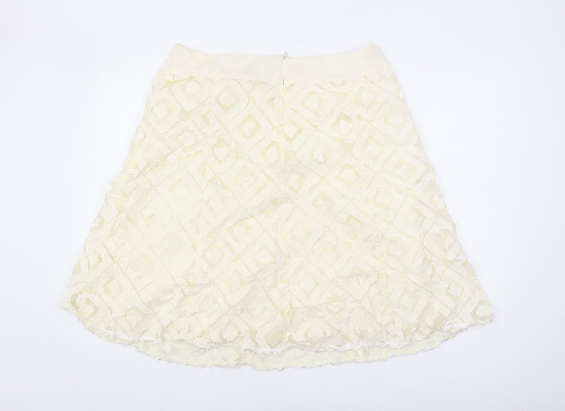 Elevate your wardrobe with this chic ivory A-line skirt from Principles. Perfectly designed for women, this elegant piece offers a sophisticated geometric pattern that adds a touch of charm and uniqueness to your outfit. The skirt, crafted from a comfortable blend of 59% cotton and 41% polyester, provides you with a soft yet durable wear experience. The material mix ensures breathability and shape retention, making it ideal for a range of activities. This stylish skirt is in excellent condition, showcasing a clean and pristine appearance with no signs of significant wear. The zip closure design offers effortless wearability while maintaining a seamless and polished look. Whether you're attending a casual gathering, a business meeting, or a semi-formal event, this versatile A-line skirt is a must-have. Its regular size 16 fit allows for flexible styling, pairing well with both fitted tops and flowy blouses. Add a pop of sophistication and elegance to your collection, ensuring you're always fashion-ready. Get this delightful piece today and enjoy a wardrobe staple that speaks of both quality and style.