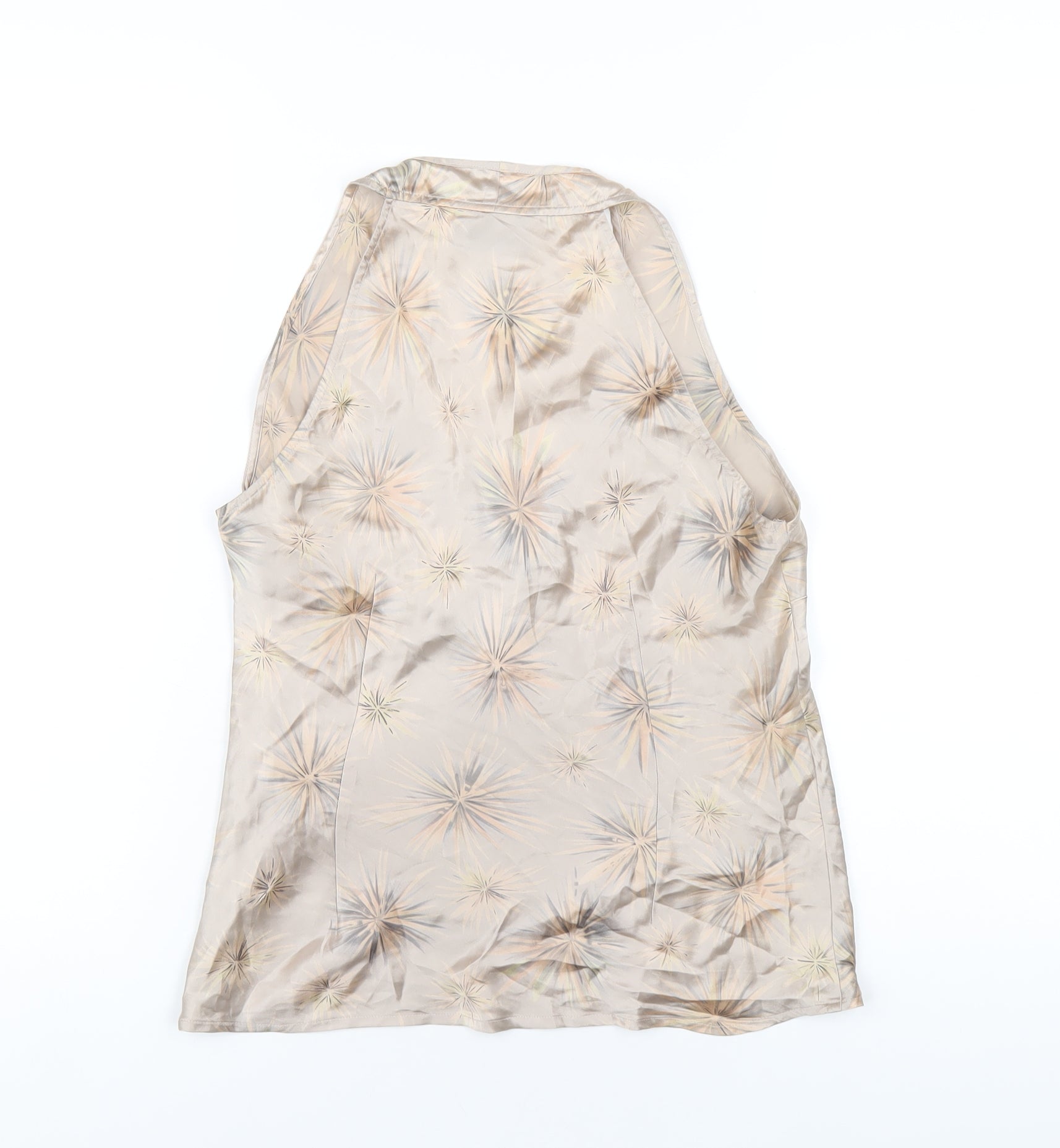 Womens Beige Geometric Silk Basic Tank Size 10 V-Neck