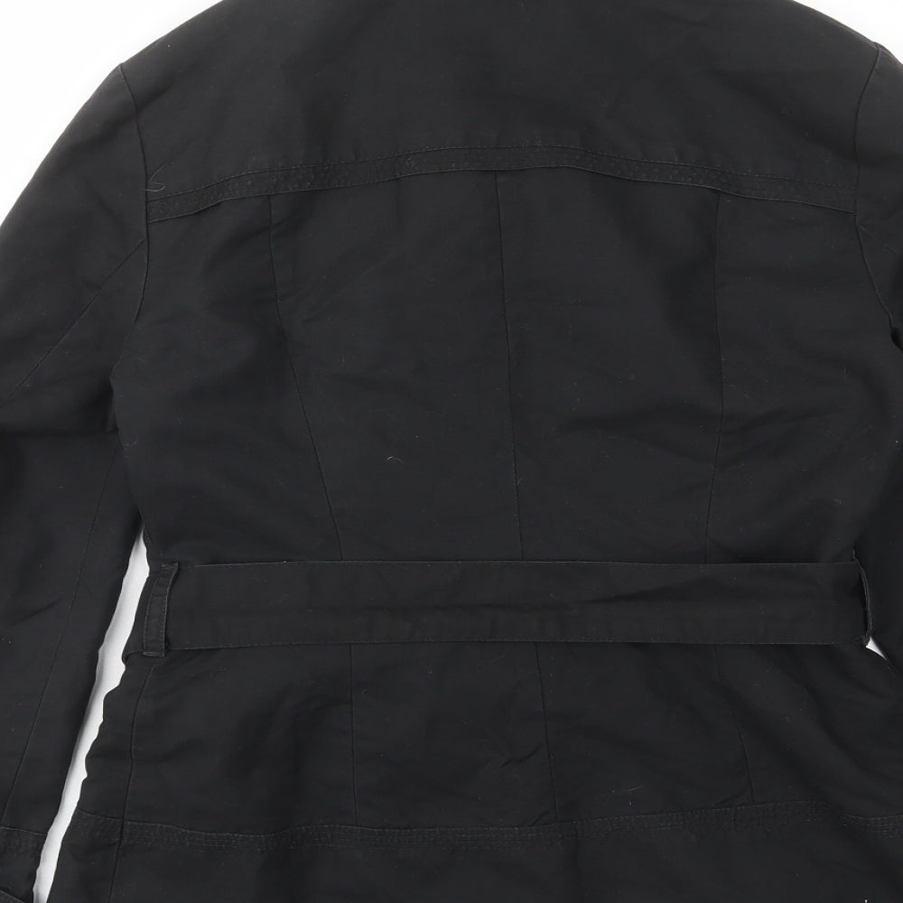Womens Black Jacket Size 8 Button - Pockets, Belted