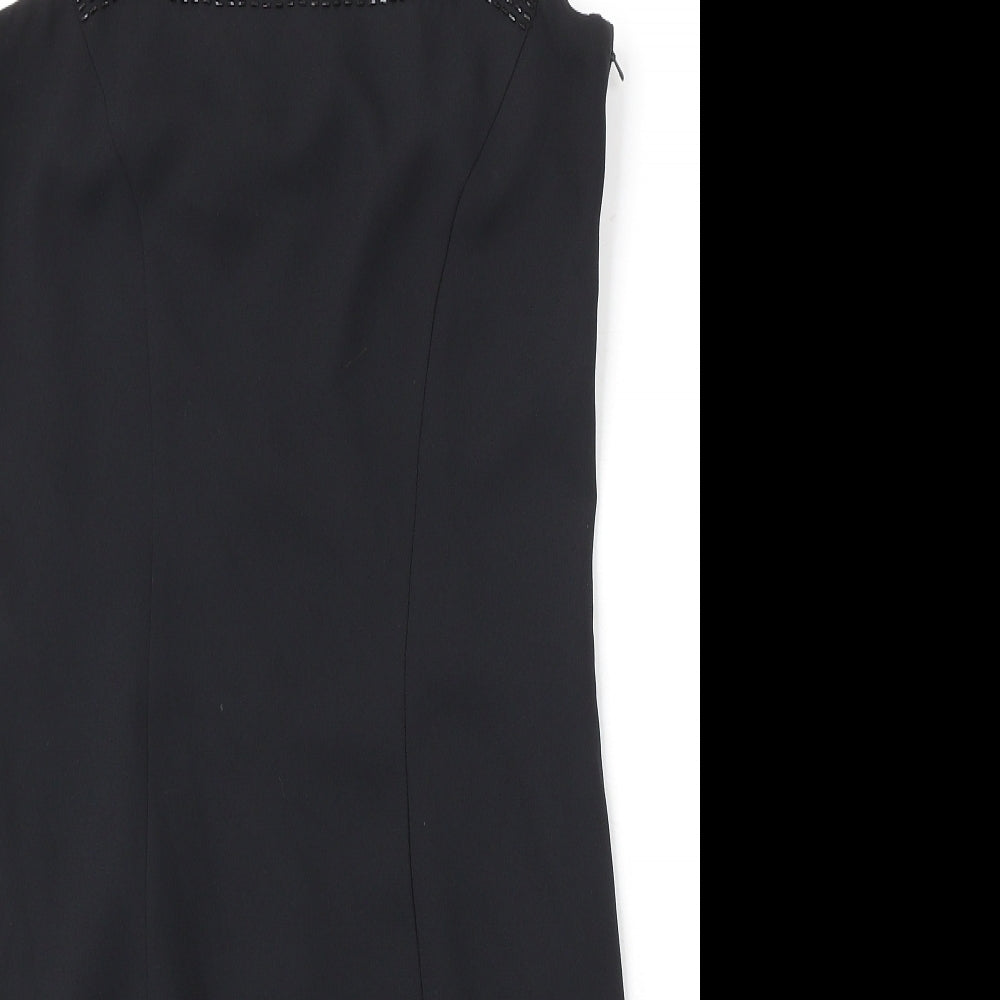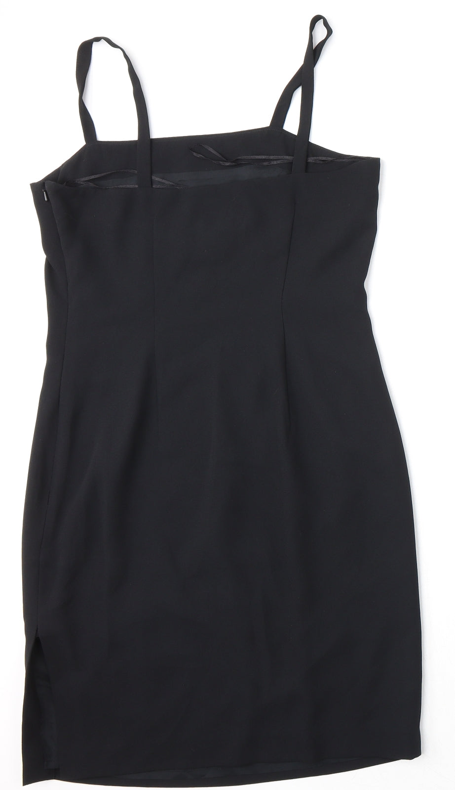 Womens Black Polyester Slip Dress Size 12 Square Neck Zip