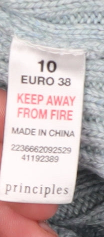 Enhance your winter wardrobe with this elegant blue roll neck jumper from Principles. Designed with an intricate cable-knit pattern, this pullover offers both style and comfort. The blend of 60% acrylic and 40% cotton ensures a soft and warm feel, making it perfect for those chilly days in autumn and winter. In a versatile size 10, this jumper features a classic roll neck and long sleeves, providing a stylish and cosy fit. Ideal for casual occasions, this knit is both machine washable and easy to maintain. A slight discoloration adds a vintage charm, yet the jumper remains in excellent condition offering great value. Embrace the timeless appeal of this Principles jumper and add a touch of classic elegance to your cold-weather outfits.