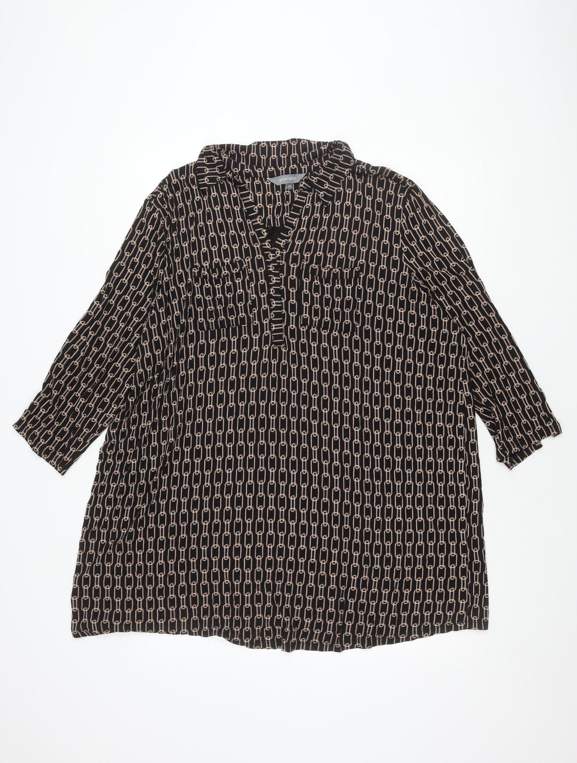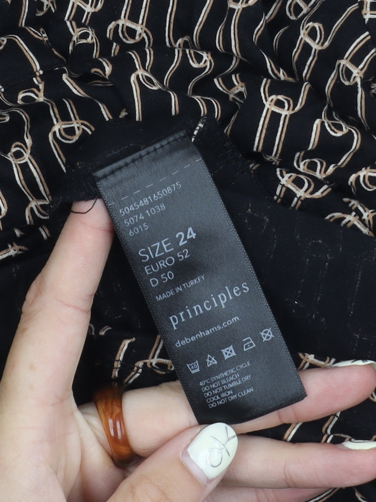Elevate your wardrobe with this sophisticated and stylish top from Principles, designed specifically for those who adore unique patterns. Crafted in a classic black hue, the top features an intricate geometric design, making it a standout addition to any collection. With 3/4 sleeves, this piece offers a blend of style and comfort, perfect for transitional seasons or layering throughout the year. The woven fabric brings both durability and a refined appearance, suitable for a variety of occasions, whether casual outings or more formal gatherings. Its regular fit ensures a flattering silhouette, while the absence of visible wear or damage points to its excellent condition, making it an ideal choice for the discerning fashionista. Don't miss the chance to own this distinctive piece to enhance your daily ensembles. Machine washable for added convenience, this top is a winner in both style and functionality.