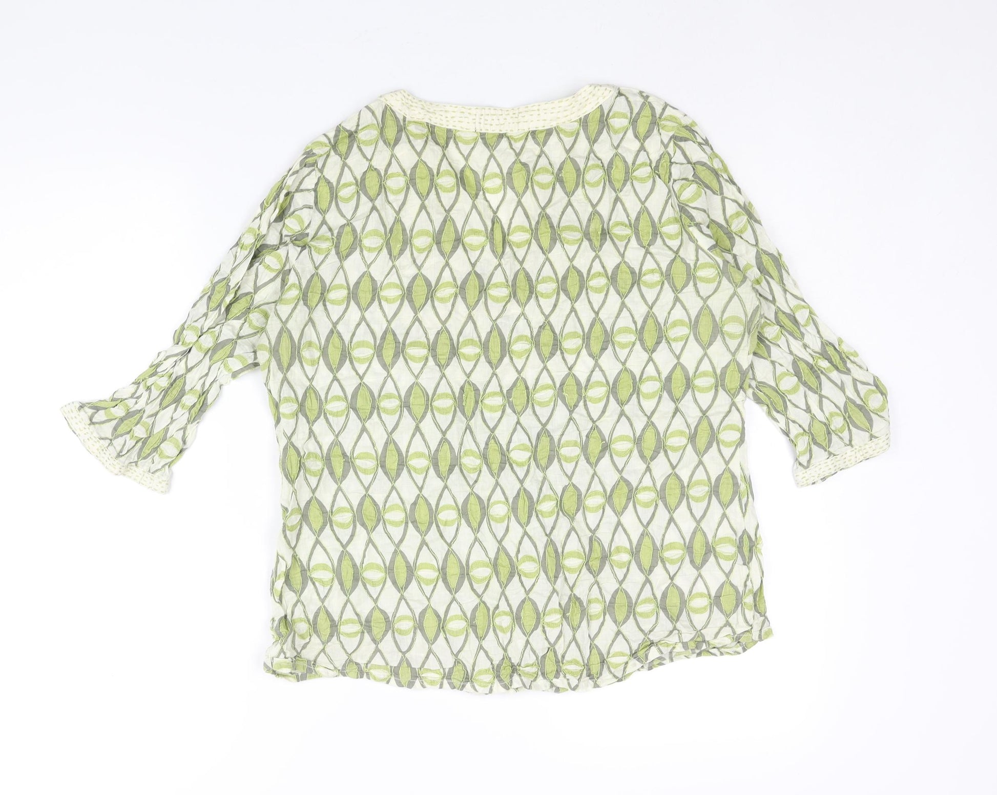 Womens Green Geometric Cotton Basic Blouse Size 16 V-Neck