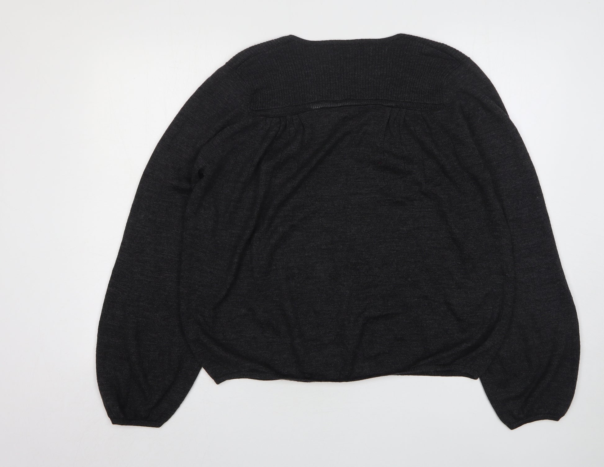 Womens Grey V-Neck Wool Pullover Jumper Size 16