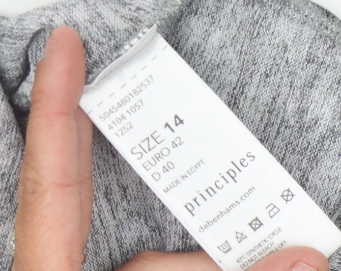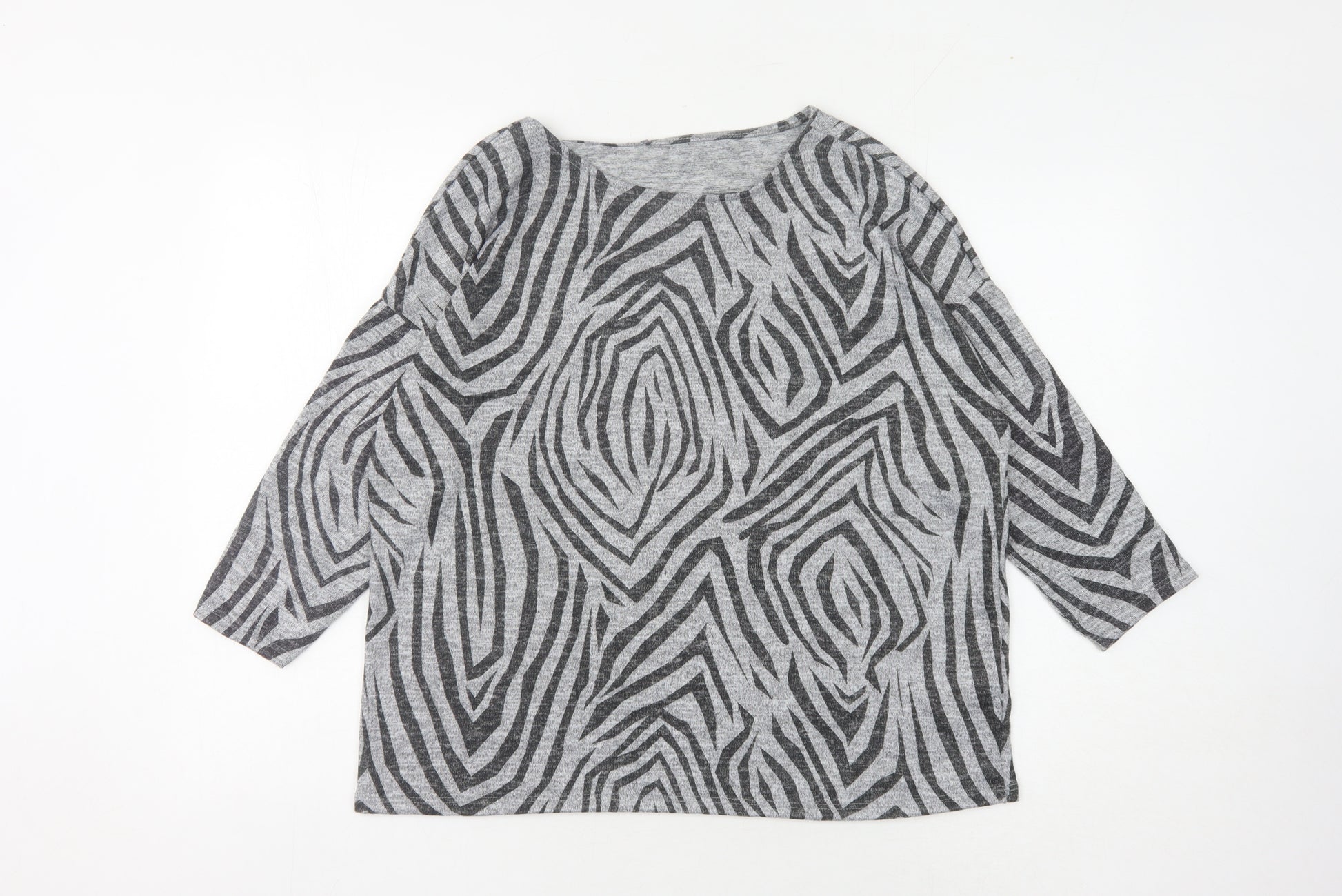 Elevate your casual wardrobe with this chic Principles Grey Zebra Print Jumper, available in size 14. Crafted with a silky knit fabric, this jumper is composed of 97% polyester and 3% elastane for optimal comfort and stretch. Its unique grey zebra pattern offers a fashionable twist to your everyday outfit. Featuring a stylish boat neck, this jumper has a relaxed 3/4 sleeve making it suitable for day-long wear. Perfect for women looking to add a stylish piece to their collection, it’s machine washable allowing for effortless maintenance. With its excellent condition, this jumper promises a modern aesthetic with long-lasting quality. Ideal for casual outings or a cozy day in, this piece seamlessly combines comfort and style.
