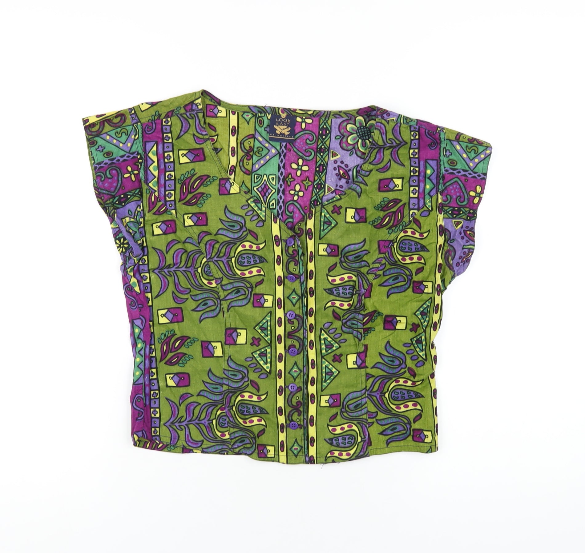 Womens Multicoloured Geometric Cotton Basic Button-Up Size 16 V-Neck
