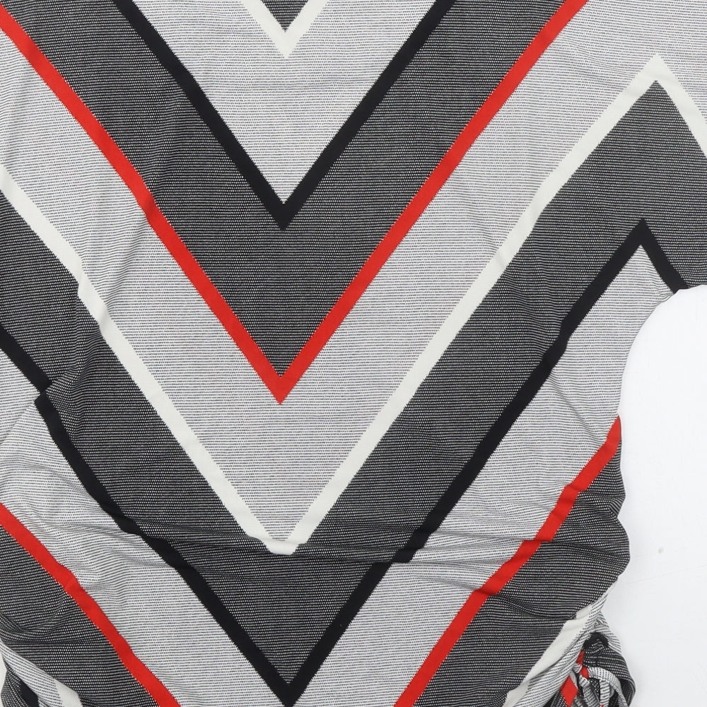 Womens Multicoloured Geometric Polyester Basic T-Shirt Size 12 Round Neck