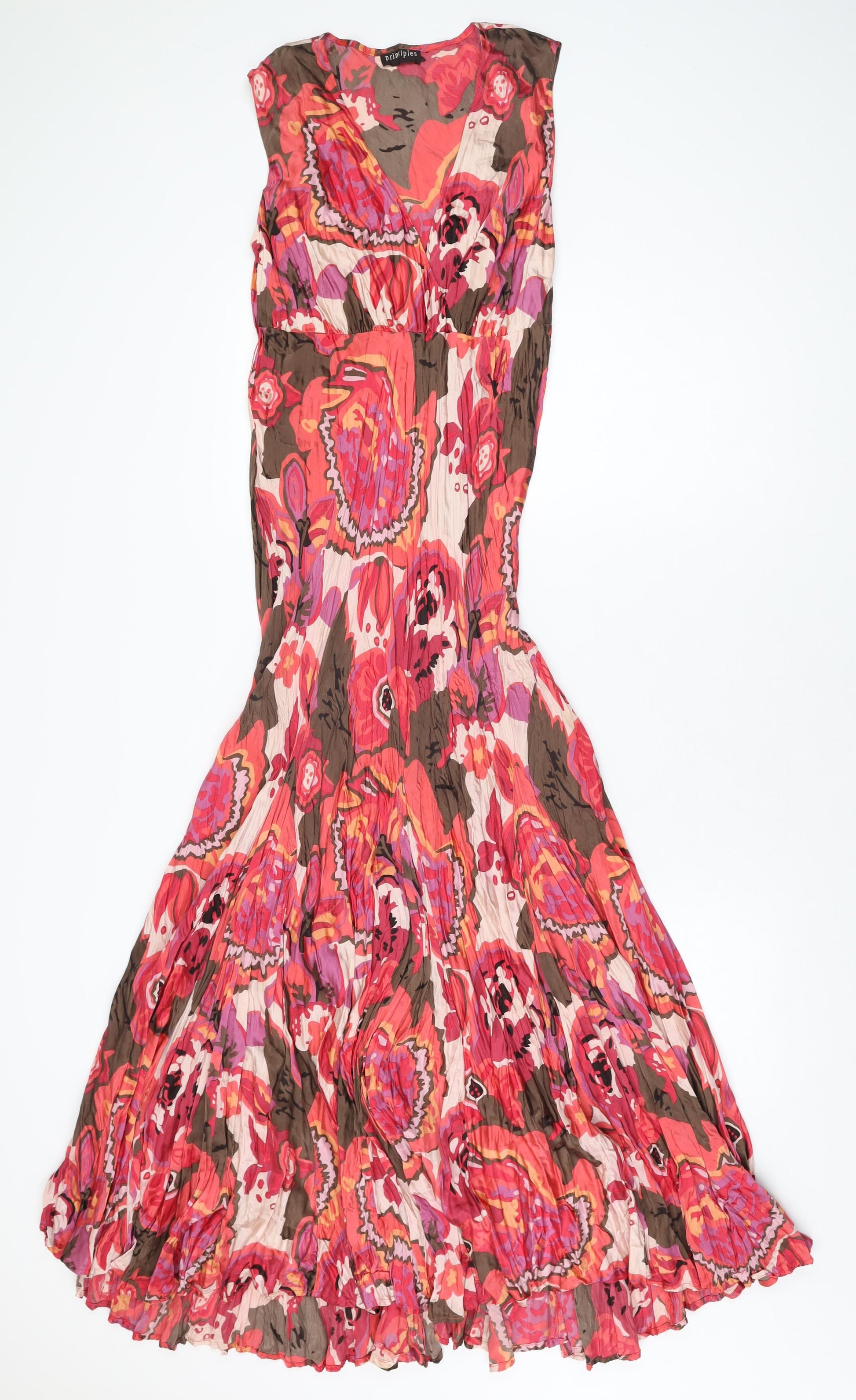 Womens Pink Geometric Silk Maxi Size 12 V-Neck Zip
