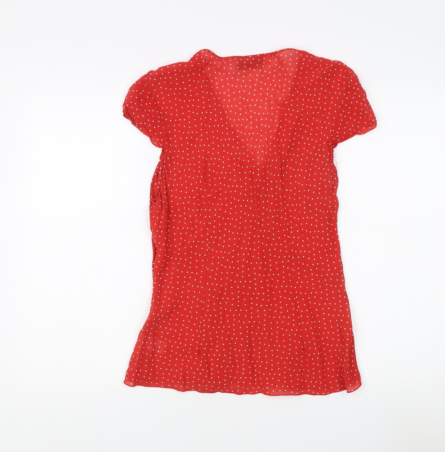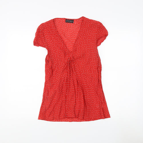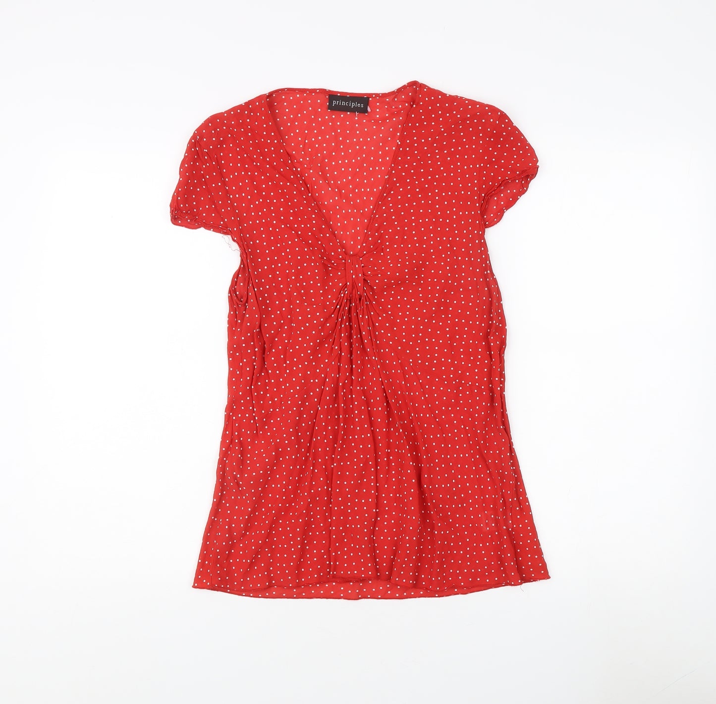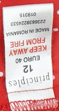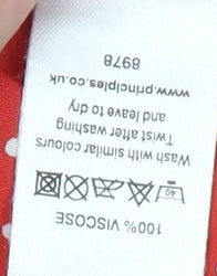 Add a pop of colour to your wardrobe with this charming red polka dot top from Principles. Perfect for women who appreciate both style and comfort, this top is designed with a flattering V-neckline and delicate puff sleeves for a touch of elegance. Crafted from 100% viscose, it offers a lightweight and breathable fabric that's ideal for any season. The distinctive polka dot pattern adds a playful twist, making it a versatile piece that can be dressed up or down for various occasions. Whether paired with jeans for a casual day out or a skirt for a more formal setting, this top is sure to complement your look. Available in size 12, it boasts a comfortable fit that embraces your silhouette beautifully. With its excellent condition and no visible defects, it promises longevity and timeless appeal in your clothing collection. Enjoy the ease of machine washability, ensuring it's as practical as it is stylish. Make this Principles top a staple in your fashion rotation today.