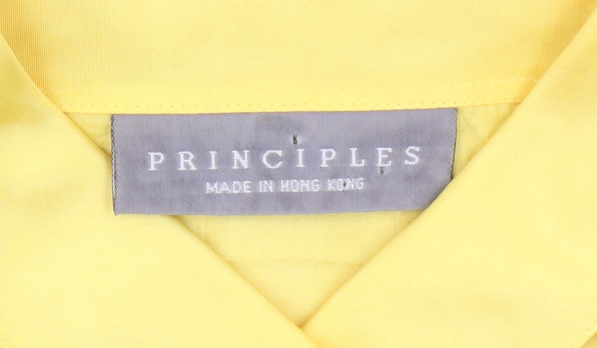 Elevate your spring and summer wardrobe with this vibrant yellow button-up shirt from Principles. Designed for women who appreciate both comfort and style, this piece strikes a balance between casual and chic. Made entirely from polyester, the shirt promises a breathable fit ideal for warmer months. Its collared neckline and long, classic sleeves lend a timeless elegance, making it suitable for various casual occasions. The solid pattern ensures versatility, allowing you to pair it effortlessly with your favourite jeans or trousers. Though the shirt presents some creases, reflecting gentle pre-worn conditions, it maintains excellent overall quality. The clean lines and bright hue are perfect for those seeking a pop of colour in their seasonal wardrobe. Enjoy the practicality of machine washable fabric, ensuring easy upkeep. Available in a regular size 12, this button-up top is a wardrobe staple that will not only enhance your ensemble with its lively charm but also offer a reliable and stylish option for daily wear.