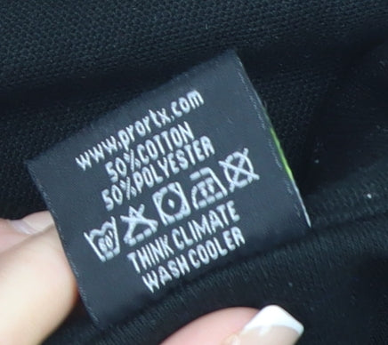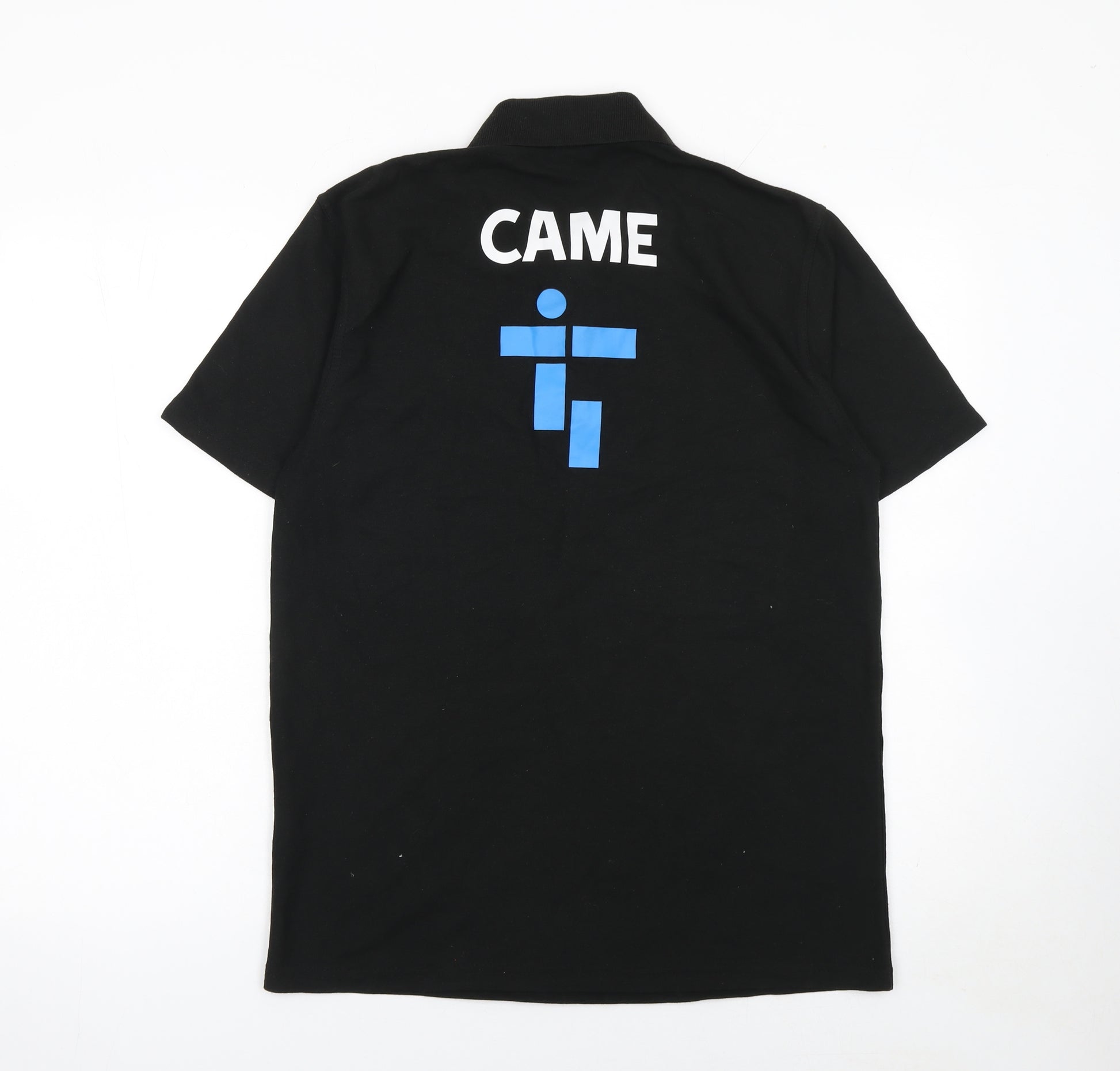Refresh your workwear or casual wardrobe with this classic black polo shirt from Pro RTX, model RX101. Designed for both durability and comfort, this men's polo is crafted from a balanced 50% cotton and 50% polyester blend, providing a breathable feel while offering resilience for everyday wear. The solid black tone gives it a professional, versatile look, complemented by the embroidered white and blue 'CAME' logo to the chest and back for a distinctive branded finish. Featuring a traditional collared neckline with a subtle three-button placket, it maintains a smart silhouette suitable for work or leisure. The short sleeves and regular fit allow for easy movement, making it ideal for active or outdoor work environments. With easy-care, machine washable fabric, it’s effortless to maintain and built to last the demands of daily use. Measuring approximately 100 cm across the chest with an estimated length of 75 cm, this polo fits comfortably in a medium size range. The texture of the blended cotton provides softness, while the polyester ensures shape retention and colour longevity. This Pro RTX polo is perfect for professionals, drivers, warehouse staff, or anyone seeking reliable workwear with a touch of style. In excellent pre-owned condition with minimal signs of gentle wear, this piece maintains its structure and neat appearance with no visible rips, stains, or defects. Ideal for pairing with jeans, chinos, or work trousers, this black polo remains an easy go-to for smart-casual or uniform use, offering performance and practicality in all seasons.