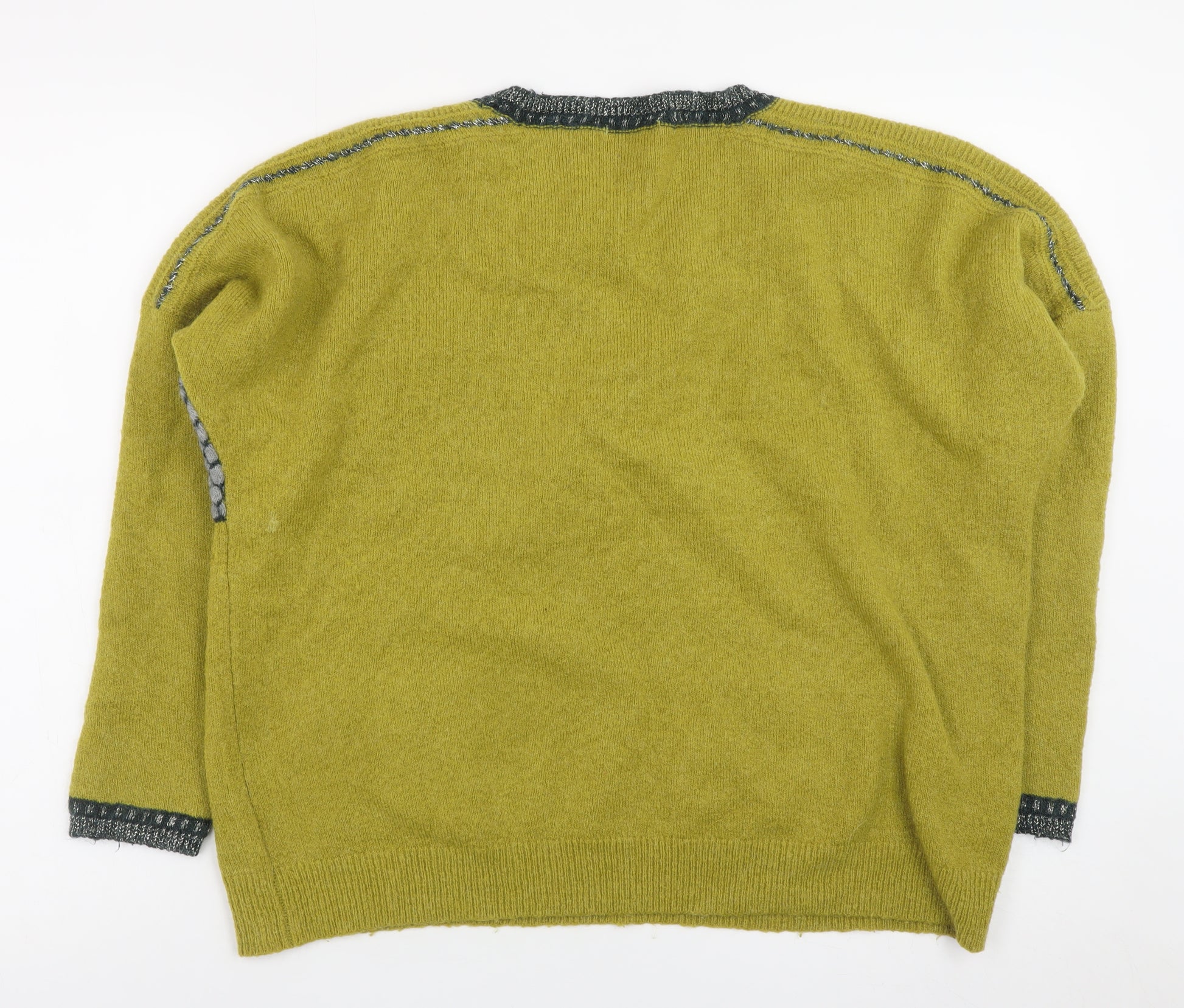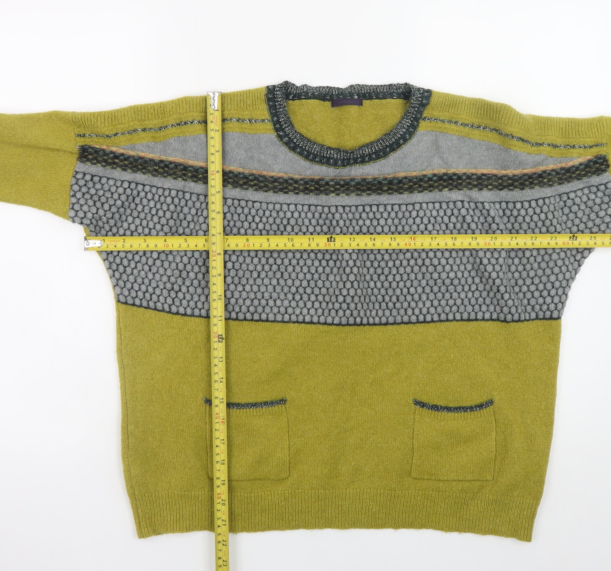 Women’s Green Grey Wool Blend Pullover Jumper Size L