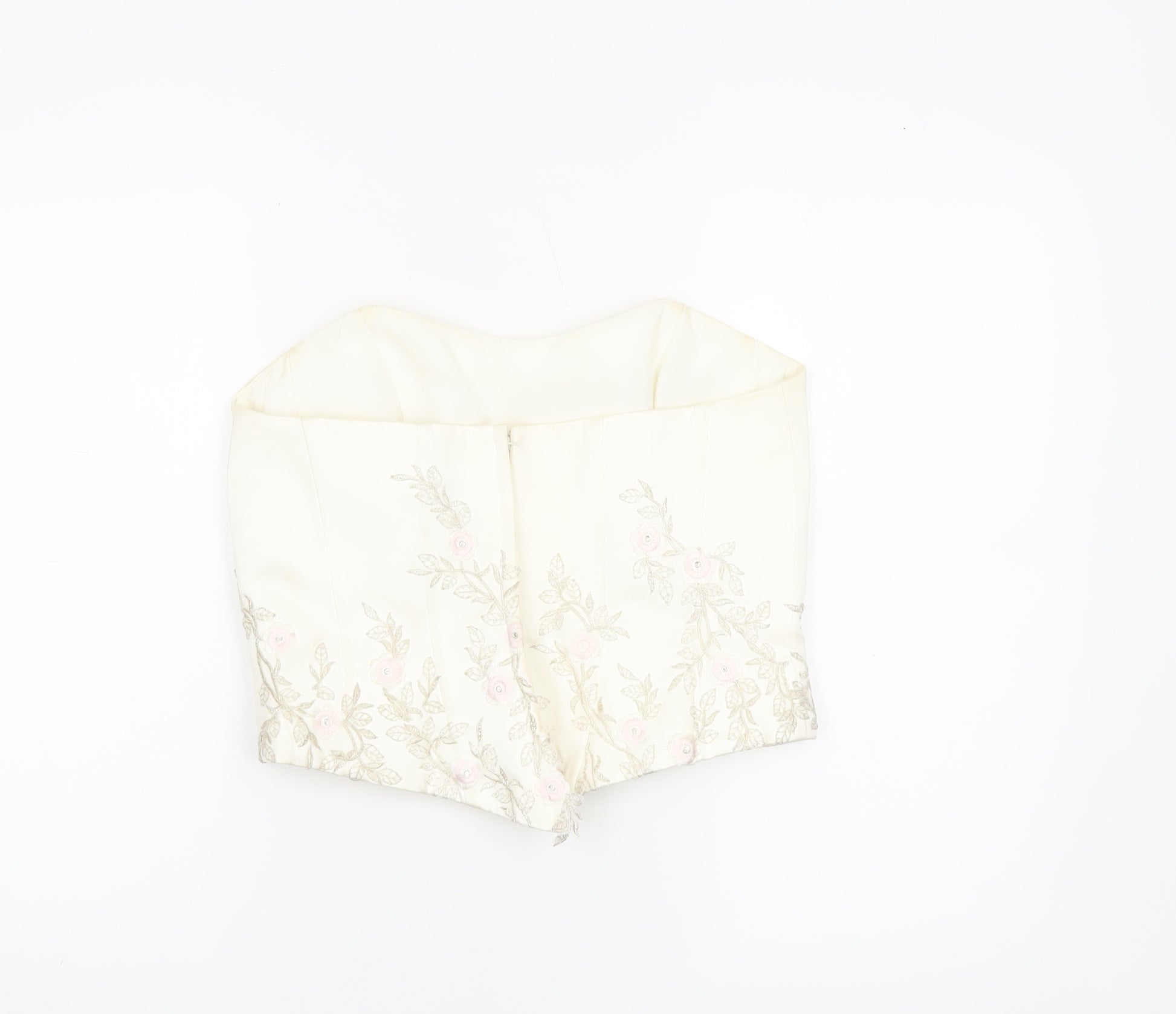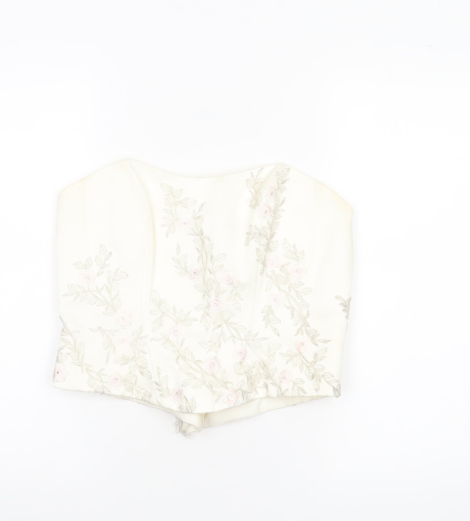 Women’s Ivory Floral Embroidered Satin Strapless Top Size 10
