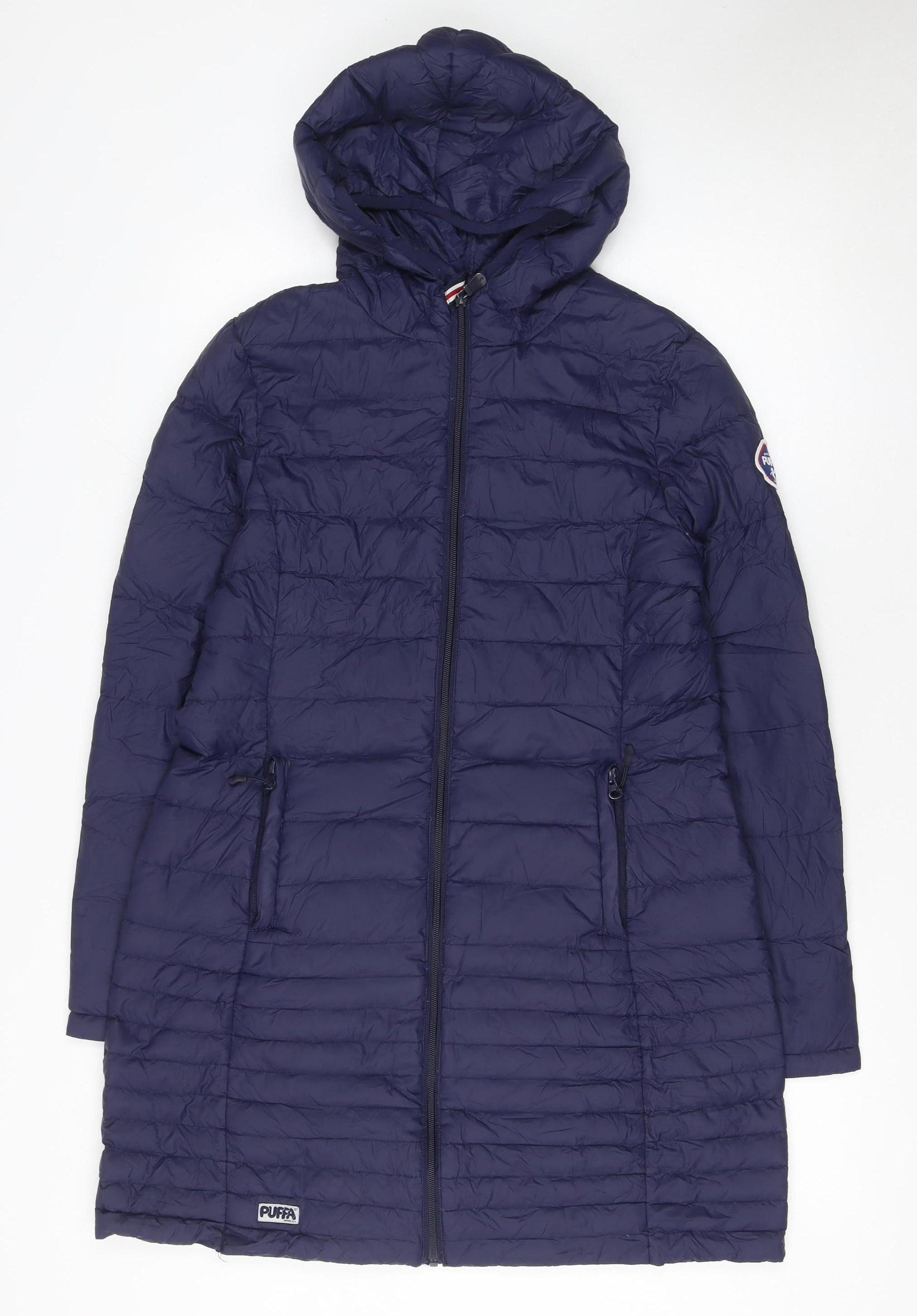 Step out in timeless comfort and warmth with this women’s Puffa long hooded puffer coat in classic deep blue. Crafted by the original British duvet clothing company established in 1973, this coat embodies the perfect balance of heritage style and modern function. Designed in a flattering long-line fit that provides excellent coverage and warmth, it’s ideal for chilly autumn and winter days. The coat features a smooth 100% nylon outer shell providing lightweight durability, with a cosy lining for extra comfort. Its premium down filling — composed of 90% down and 10% feather — ensures superior insulation without unnecessary bulk, keeping you warmer for longer while maintaining a sleek silhouette. Functional details include a full-length zip closure, two secure zipped pockets for essentials, and a comfortable hood for added protection against wind and light rain. The subtle Puffa logo accent on the hem adds a touch of authentic branding. Perfect for everyday wear, travel, or outdoor walks, this versatile coat pairs effortlessly with jeans, boots, and winter knits. Its deep blue tone complements any wardrobe, offering both practicality and style. In excellent used condition with minimal signs of wear and no visible flaws, this coat promises enduring quality and comfort. If you’re looking for a lightweight yet cosy outerwear piece that’s reliable, functional, and distinctly British in design, this Puffa coat is an outstanding choice. A trusted companion for cooler months, it reflects effortless sophistication and timeless appeal — ready to keep you warm wherever adventure takes you.