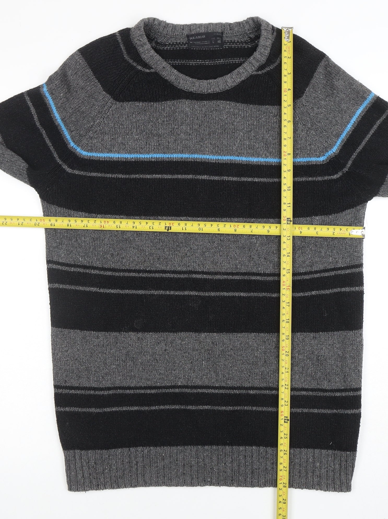 Stay warm and stylish with this men’s grey striped jumper from Pull & Bear, combining everyday comfort with a timeless design. Crafted from a soft cotton and acrylic blend, this pullover offers a balanced mix of warmth, breathability, and easy care. The crew neckline and long sleeves make it a versatile piece for layering during the cooler autumn and winter months. Its tight-knit texture gives the garment a smooth, refined feel, perfect for achieving a smart yet relaxed casual look. The understated horizontal stripe design in shades of grey with a subtle blue accent adds a touch of modern contrast that complements a wide range of outfits. Designed for a regular fit, it ensures comfortable wear without compromising on style. Ideal for pairing with jeans for a laid-back weekend look or under a jacket for an urban, layered outfit, this jumper transitions effortlessly between informal gatherings and everyday outings. Its ribbed hem and cuffs provide structure to maintain shape and add a classic finish. Made for men who appreciate quality, this Pull & Bear jumper reflects the brand’s commitment to youthful contemporary fashion infused with practicality. Machine washable for easy care, this piece is a wardrobe essential for the colder seasons. Despite light general wear, it remains in very good condition with no visible flaws or damage. Whether you’re refreshing your wardrobe or looking for a stylish gift, this grey striped jumper is an easy choice for dependable comfort and effortless style at an excellent value price.