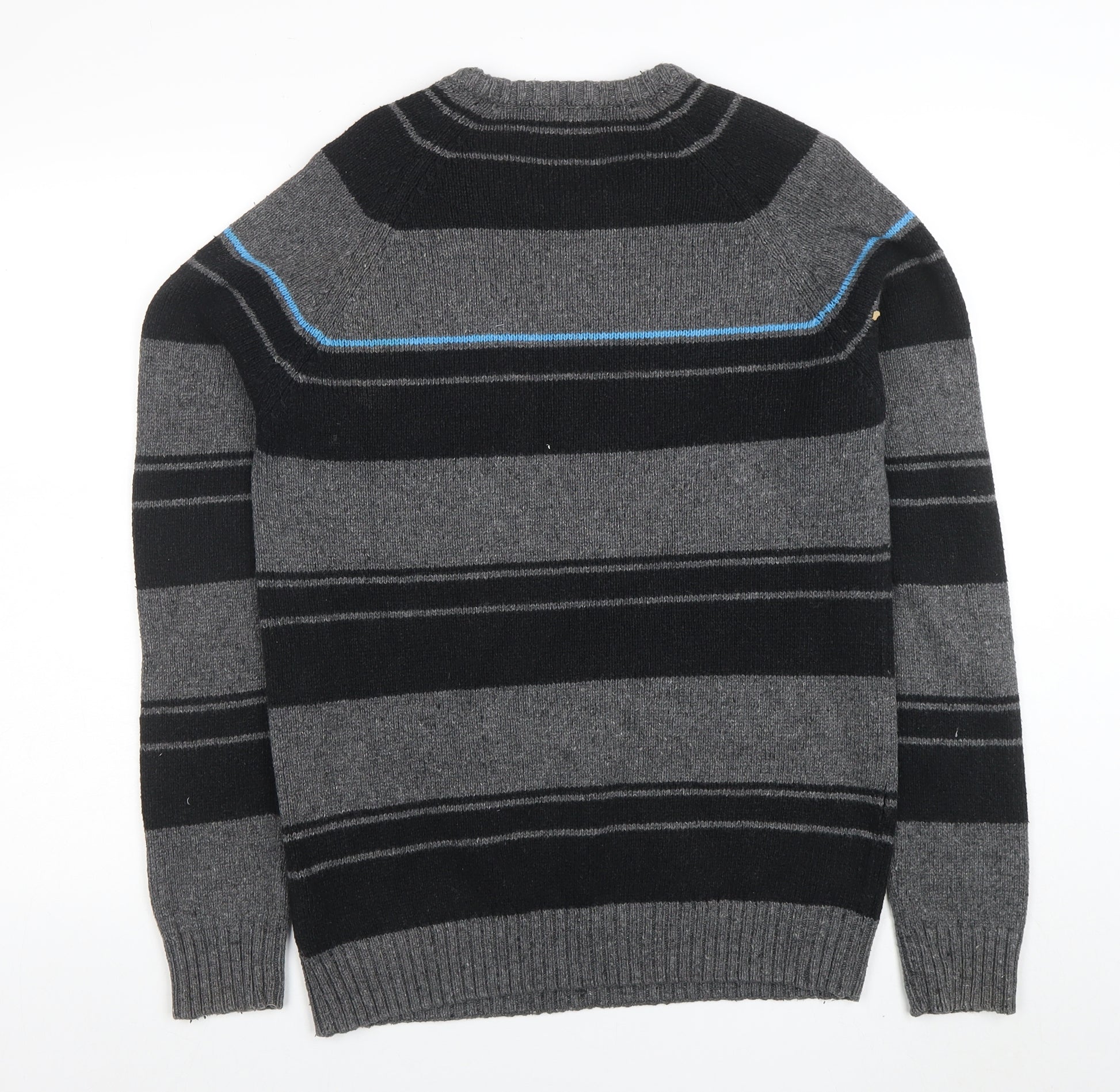 Mens Grey Striped Crew Neck Cotton Blend Jumper L