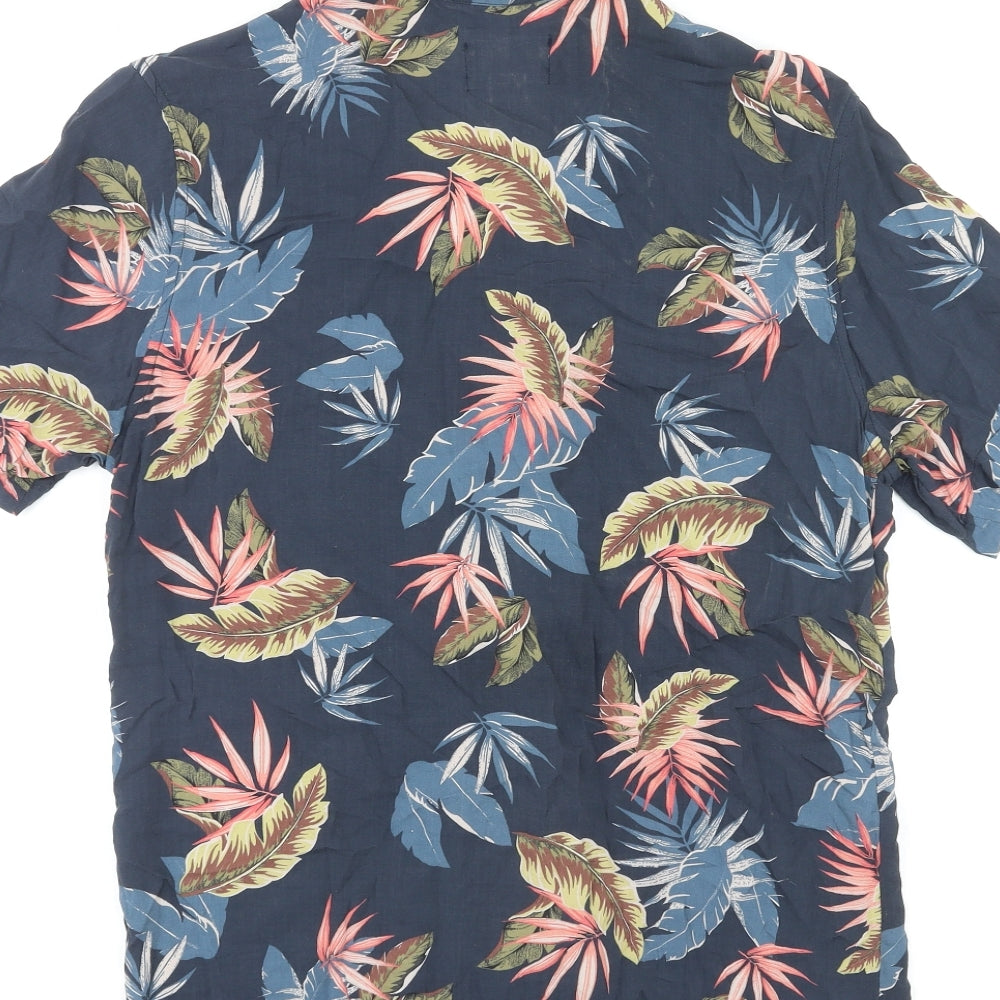 Mens Multicoloured Geometric Viscose Button-Up Size S Collared Button - Leaf Pattern