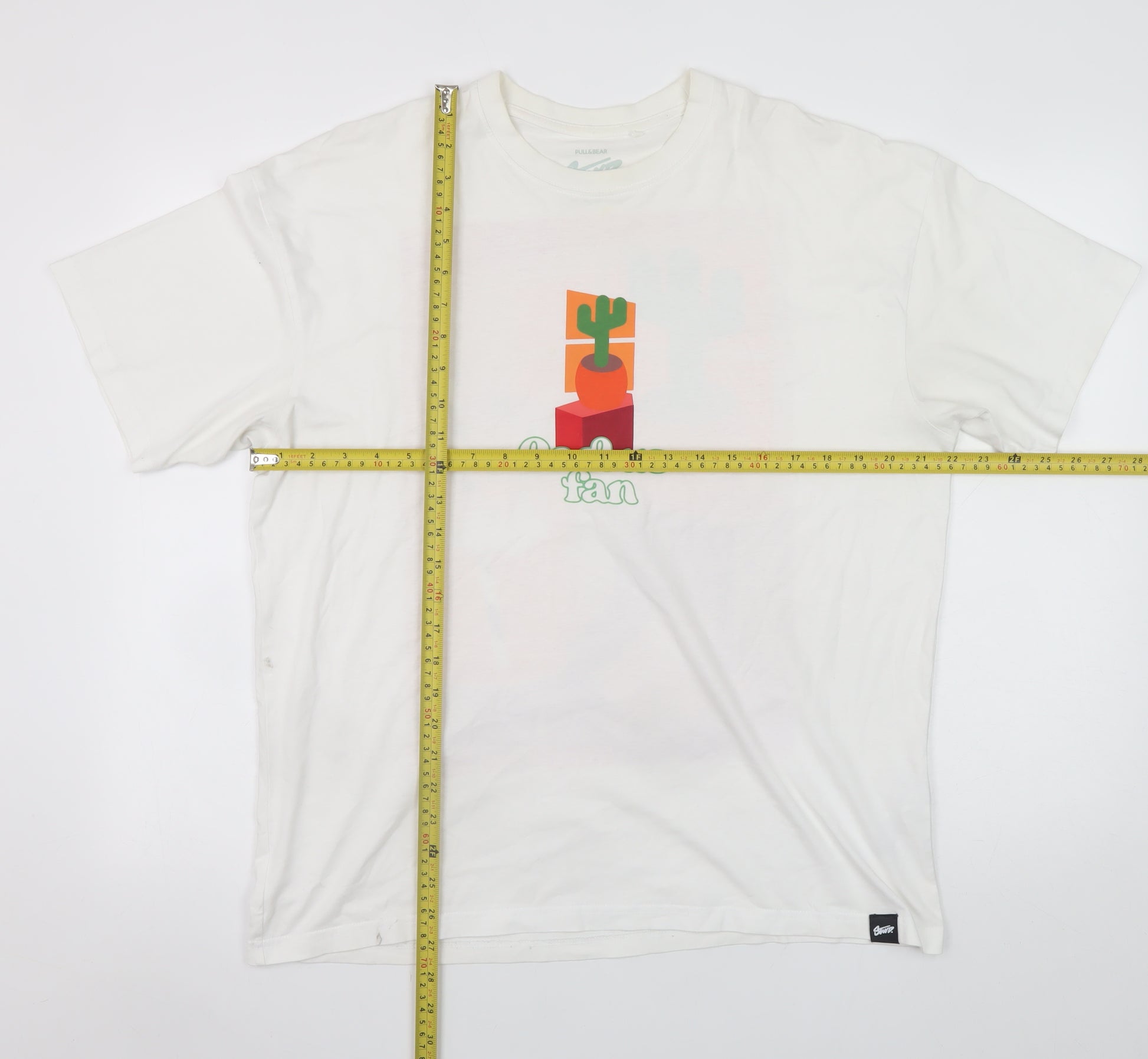 Men's White Cactus Fan Graphic Cotton T-Shirt Size M