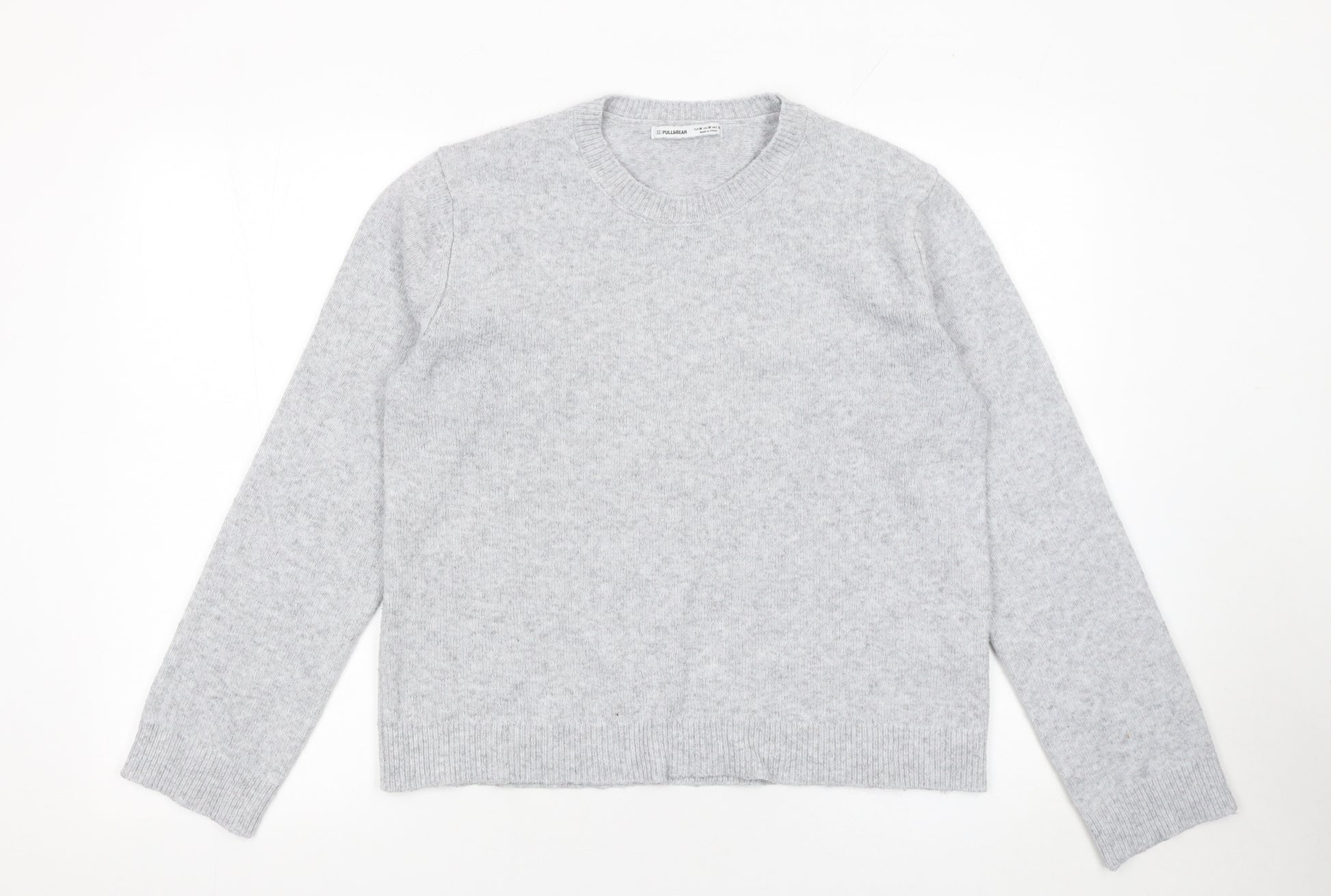 This Pull & Bear women's grey crew neck jumper offers a perfect combination of everyday comfort and modern simplicity, making it an easy addition to your wardrobe for cooler days. Crafted from a soft 65% polyester and 35% acrylic knit blend, the fabric provides a gentle, cosy feel whilst maintaining durability and lightness, ideal for layering. Designed in a classic pullover style with long sleeves and a ribbed neckline, cuffs, and hem, the jumper achieves a timeless silhouette that flatters different shapes and fits comfortably as a regular size 12. The plain grey tone means it pairs exceptionally well with almost any outfit—from tailored trousers for an elegant casual look to jeans or skirts for effortless daywear. The knit texture provides a subtle finish suitable for both home comfort and smart-casual wear. Appropriate for the autumn and winter seasons, its lightweight construction keeps you warm without feeling bulky. Machine washable for easy care, this piece requires minimal maintenance. There are no visible marks, stains, or defects noted, confirming the excellent overall condition of this item. Perfect for everyday use, commutes, or relaxed weekends, this understated design embodies both versatility and comfort while maintaining a polished aesthetic. Its neutral colour ensures long-lasting appeal and makes it a dependable wardrobe essential for the modern woman who values quality and simplicity in her fashion choices. Complete your seasonal layering essentials with this timeless Pull & Bear jumper, ready to provide both warmth and effortless appeal to your everyday ensembles.