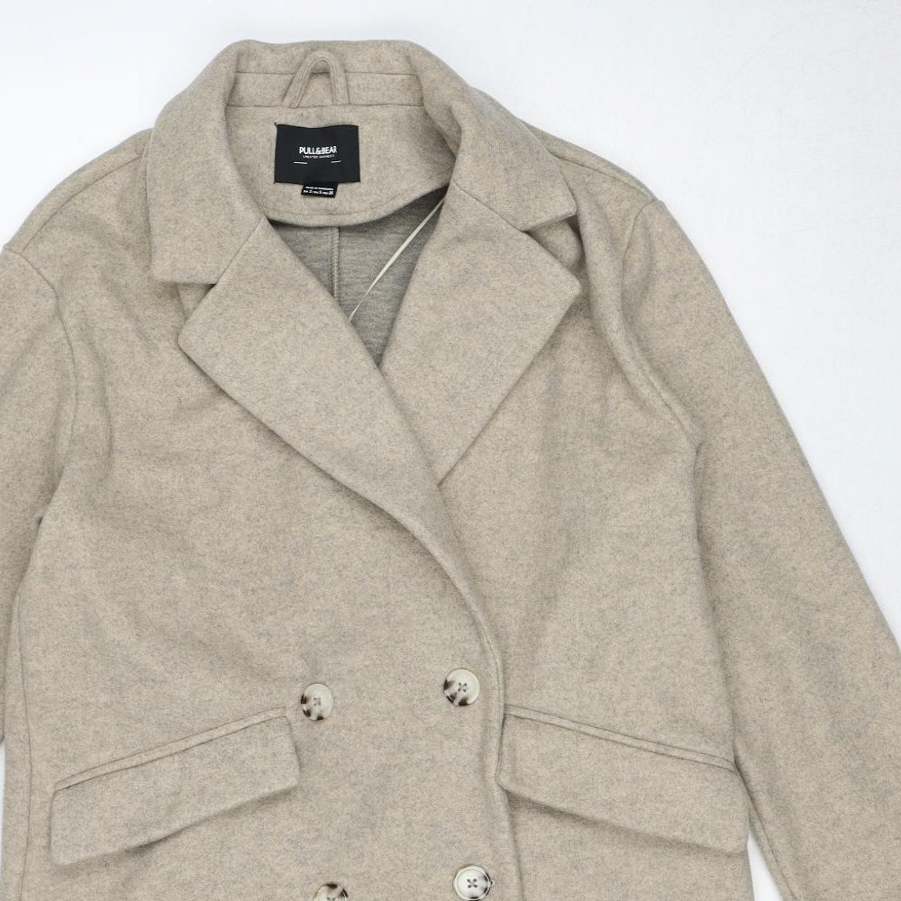 Womens Beige Geometric Overcoat Coat Size S Button