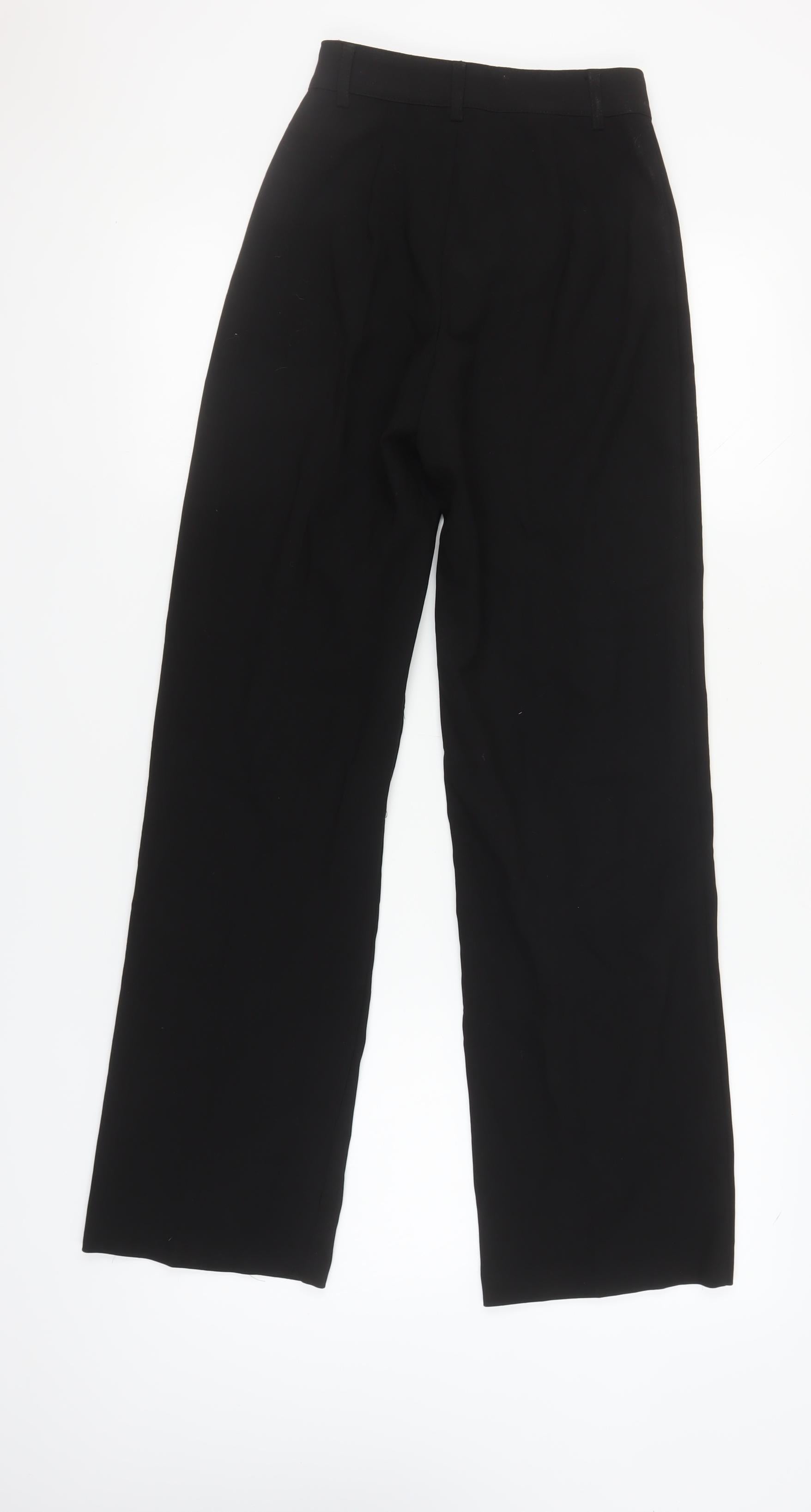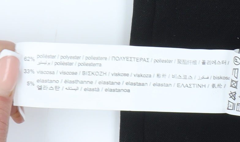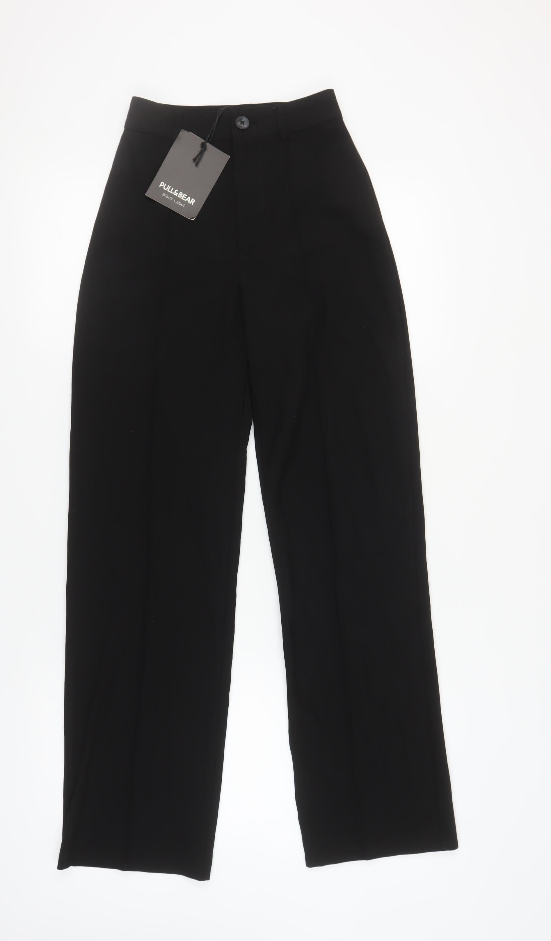 Introducing the chic and versatile Pull&Bear Women's Straight Leg Black Trousers, designed to elevate your wardrobe with contemporary style. Crafted from a blend of polyester, viscose, and elastane, these trousers promise a comfortable fit that retains shape and ease of movement. The smooth polyester adds durability, while viscose offers a soft touch, and elastane ensures a perfect fit for day-long comfort. Ideal for casual occasions, these trousers feature a flattering straight leg cut, offering a timeless silhouette that pairs effortlessly with various tops and shoes. Whether dressing up for a dinner or heading out for a day of shopping, the trousers' sleek black colour provides endless styling options. The flat front and button accents enhance the minimalist yet sophisticated look, ensuring these trousers become a staple in your collection. Perfect for all seasons, their lined structure provides added warmth during chilly days without compromising breathability. Enjoy the convenience of machine washable fabric, making maintenance a breeze without sacrificing style. With a 'New With Tags' condition, rest assured you're adding a pristine item to your wardrobe. Experience the blend of comfort, style, and practicality with these Pull&Bear trousers—where black elegance meets everyday wearability.