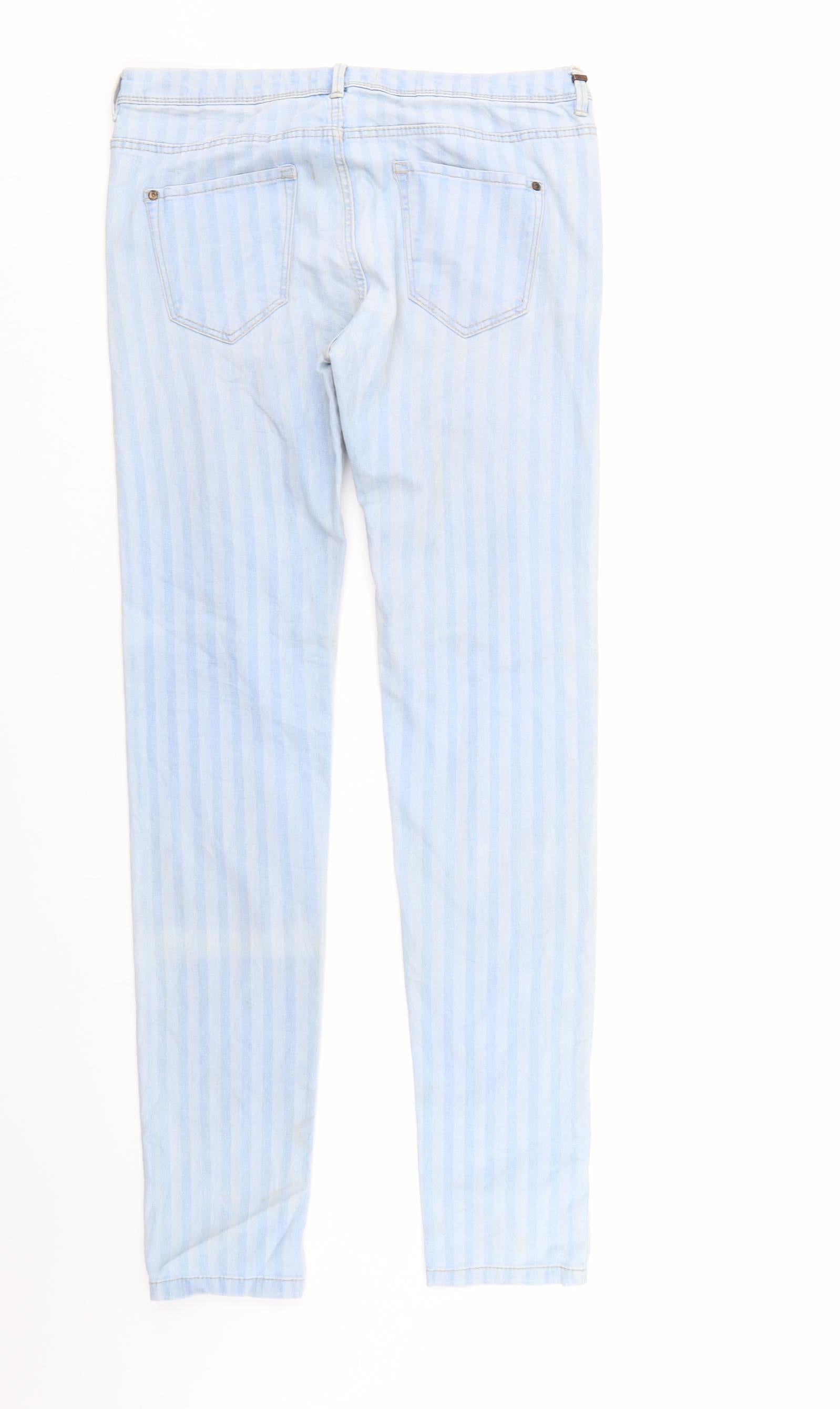 Womens Blue Striped Denim Straight Jeans Size 12 L30 in