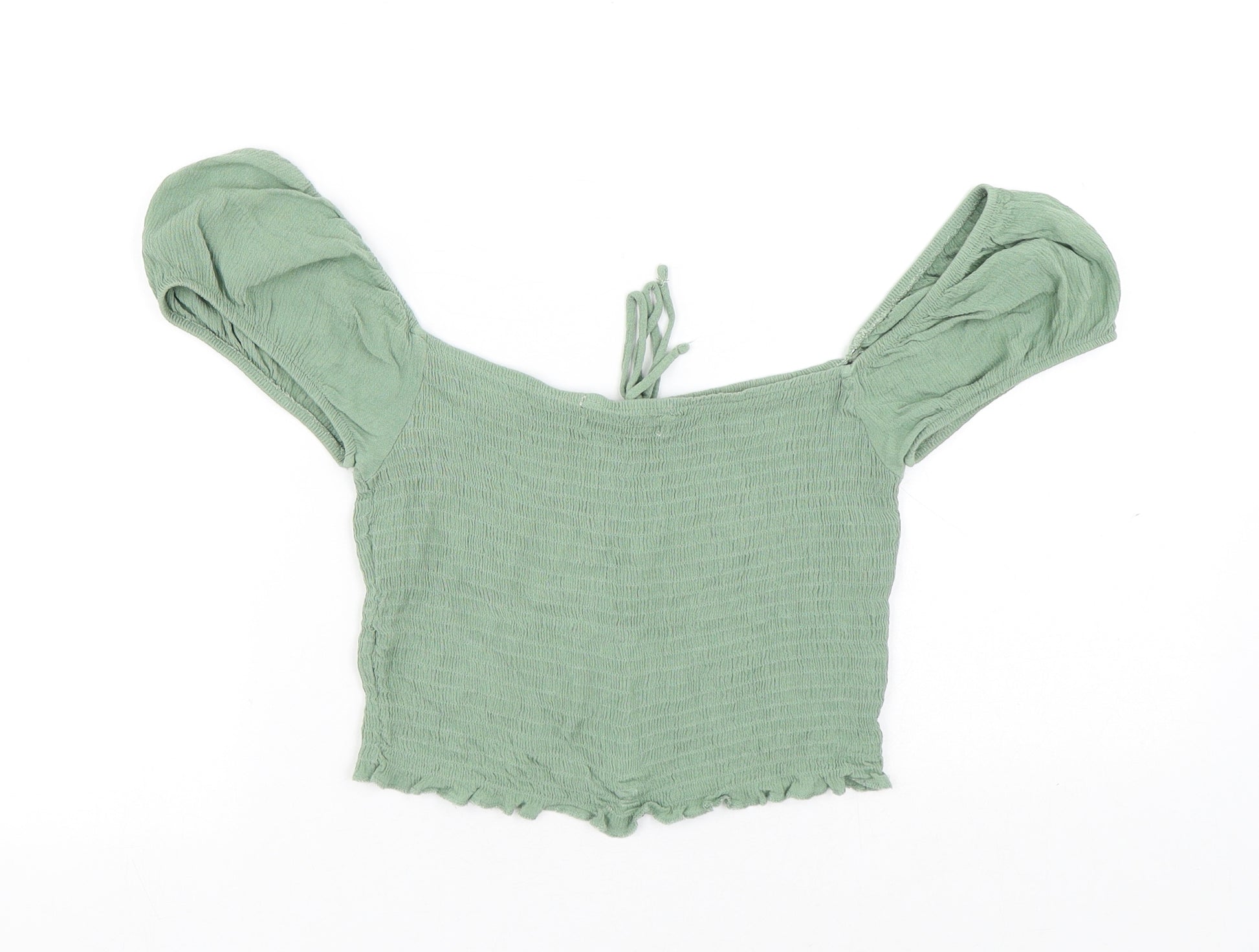 Womens Green Viscose Basic Blouse Size L Off the Shoulder - Cropped
