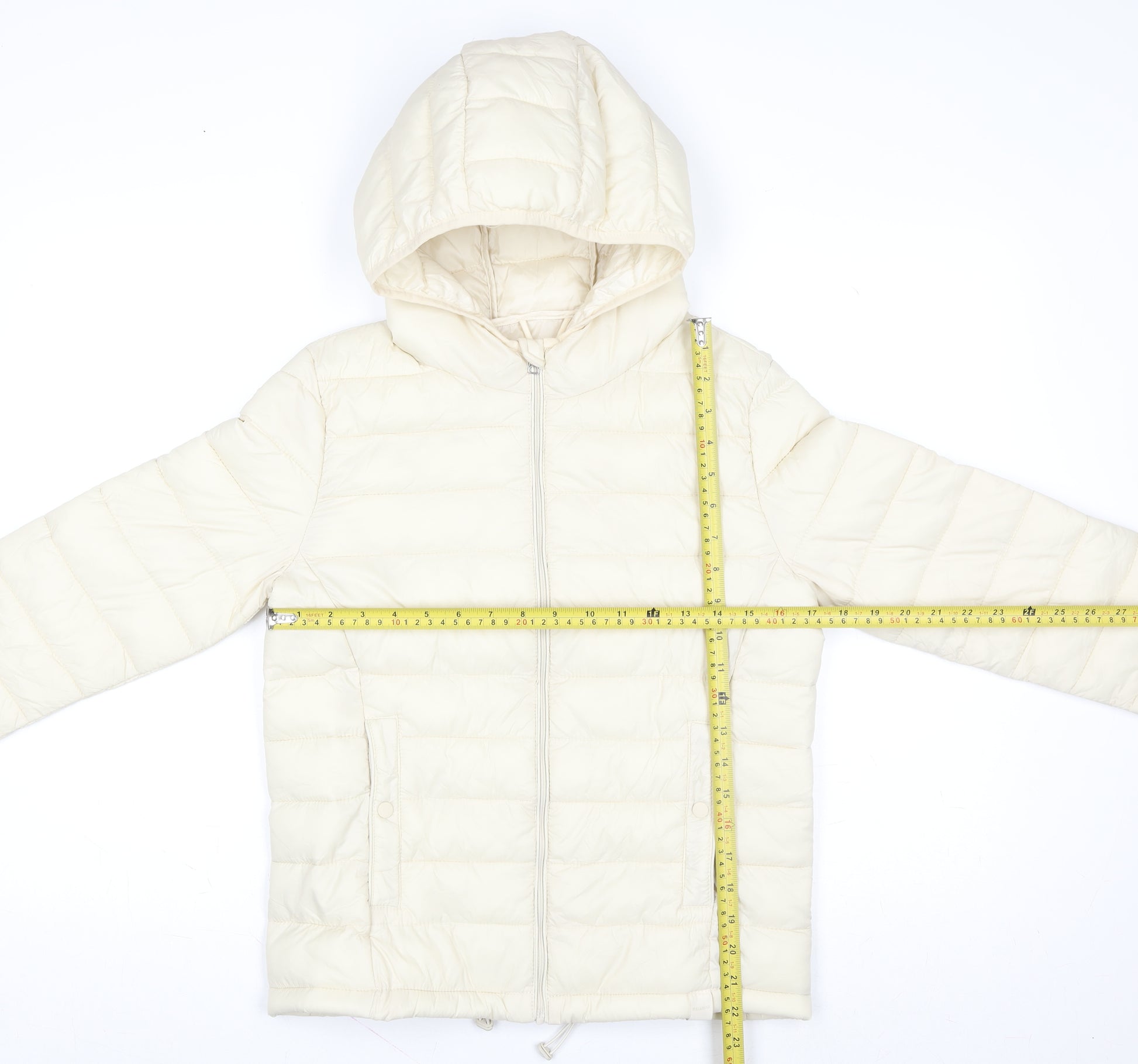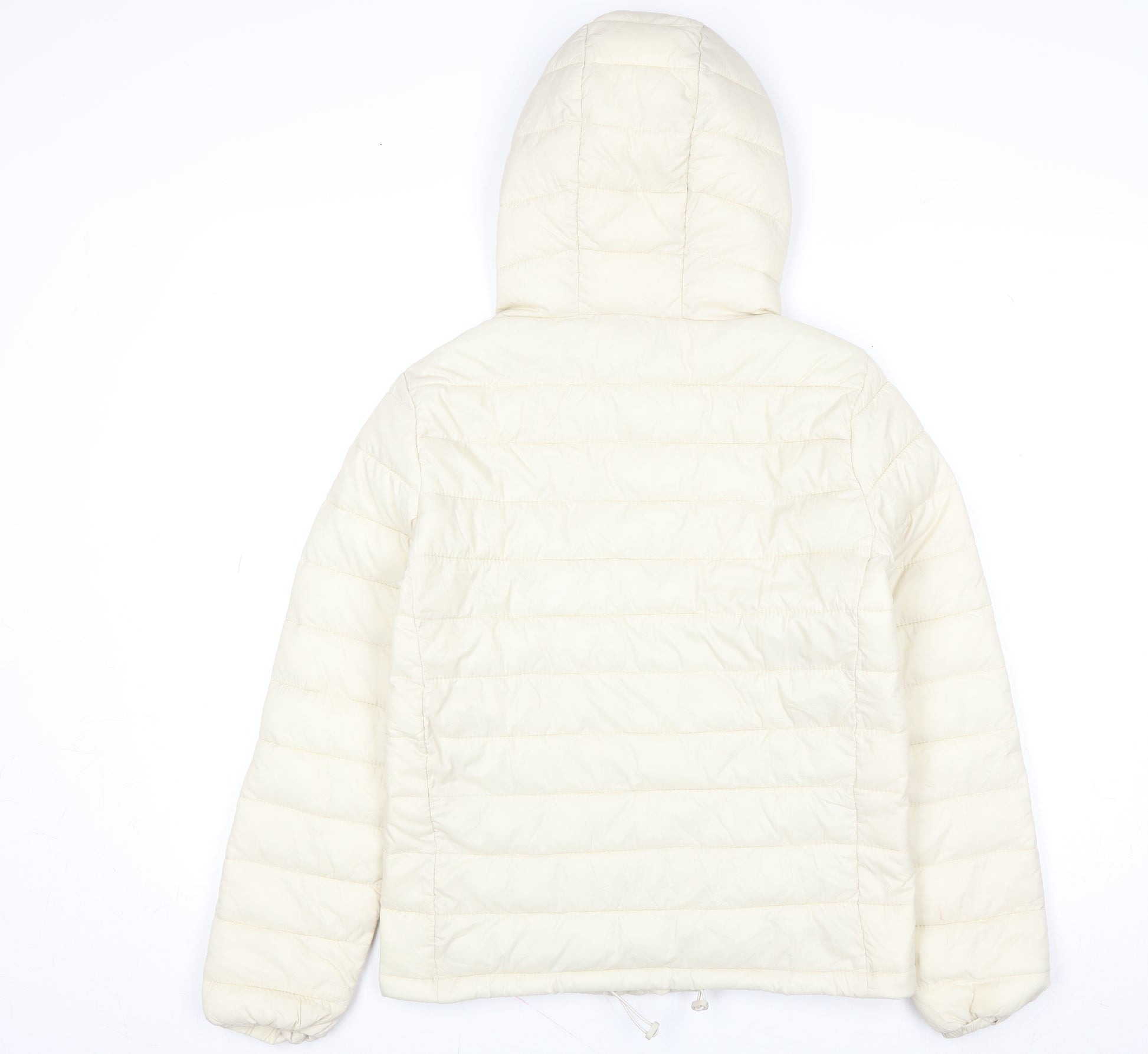 Womens Ivory Puffer Jacket S Hooded Nylon Mid-Length