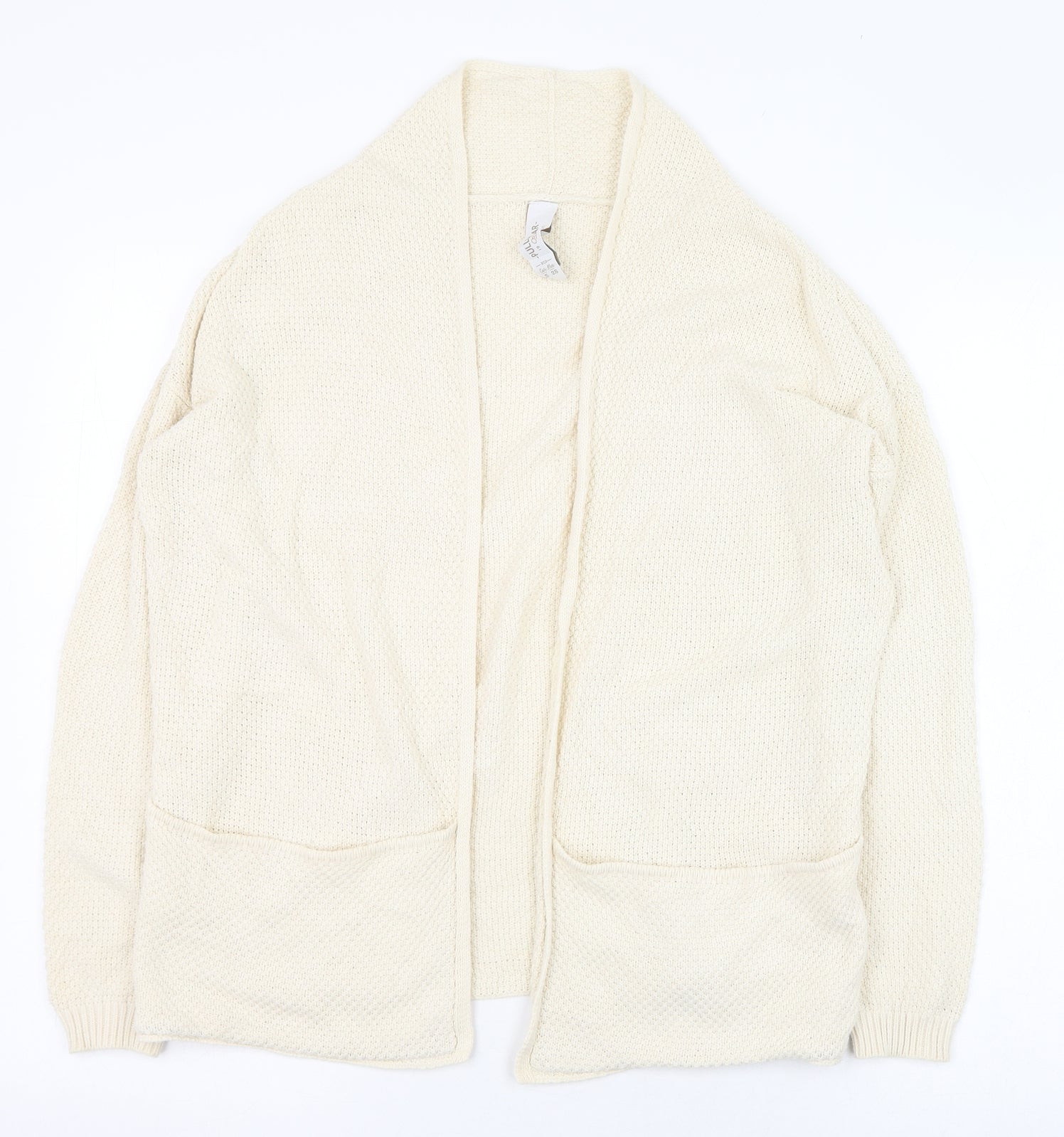 Womens Ivory Round Neck Cotton Cardigan Jumper Size 4