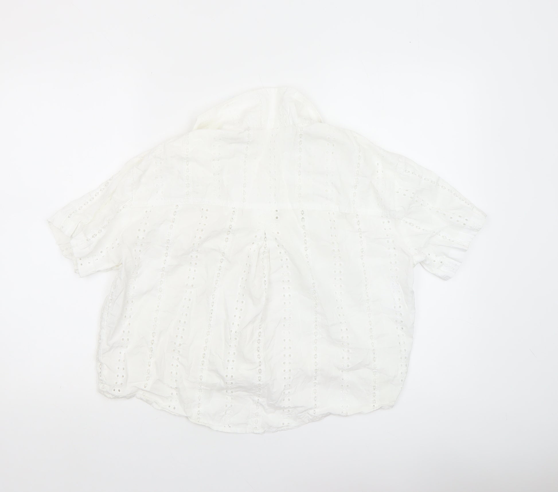 Womens White Cotton Eyelet Cropped Blouse Size 12