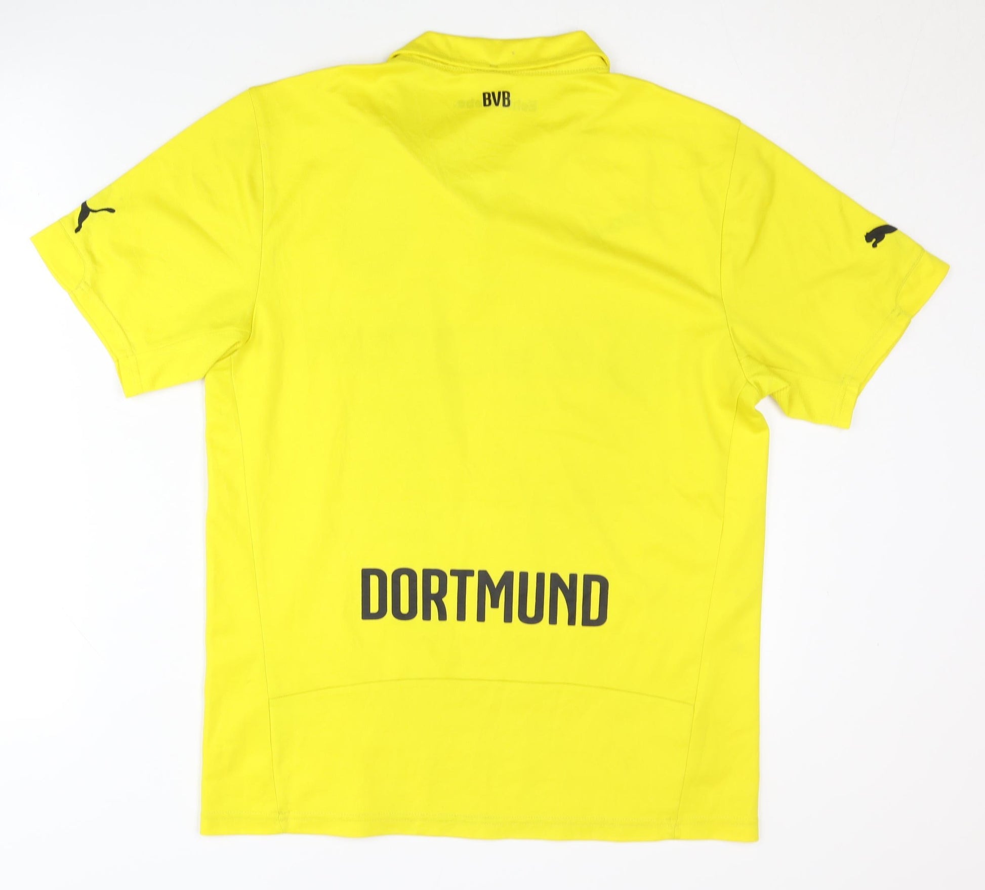 Step up your football gear collection with this authentic Borussia Dortmund home shirt by Puma. Tailored for adults, this medium-sized shirt captures the vibrant energy of the game with its striking yellow hue and iconic BVB emblem. Designed with short sleeves and crafted in a comfortable fit, it's perfect for both match days and casual wear. Its high-quality fabric ensures breathability and comfort, making it ideal for any fan or player. Wear this piece of football history with pride and support your team in style.