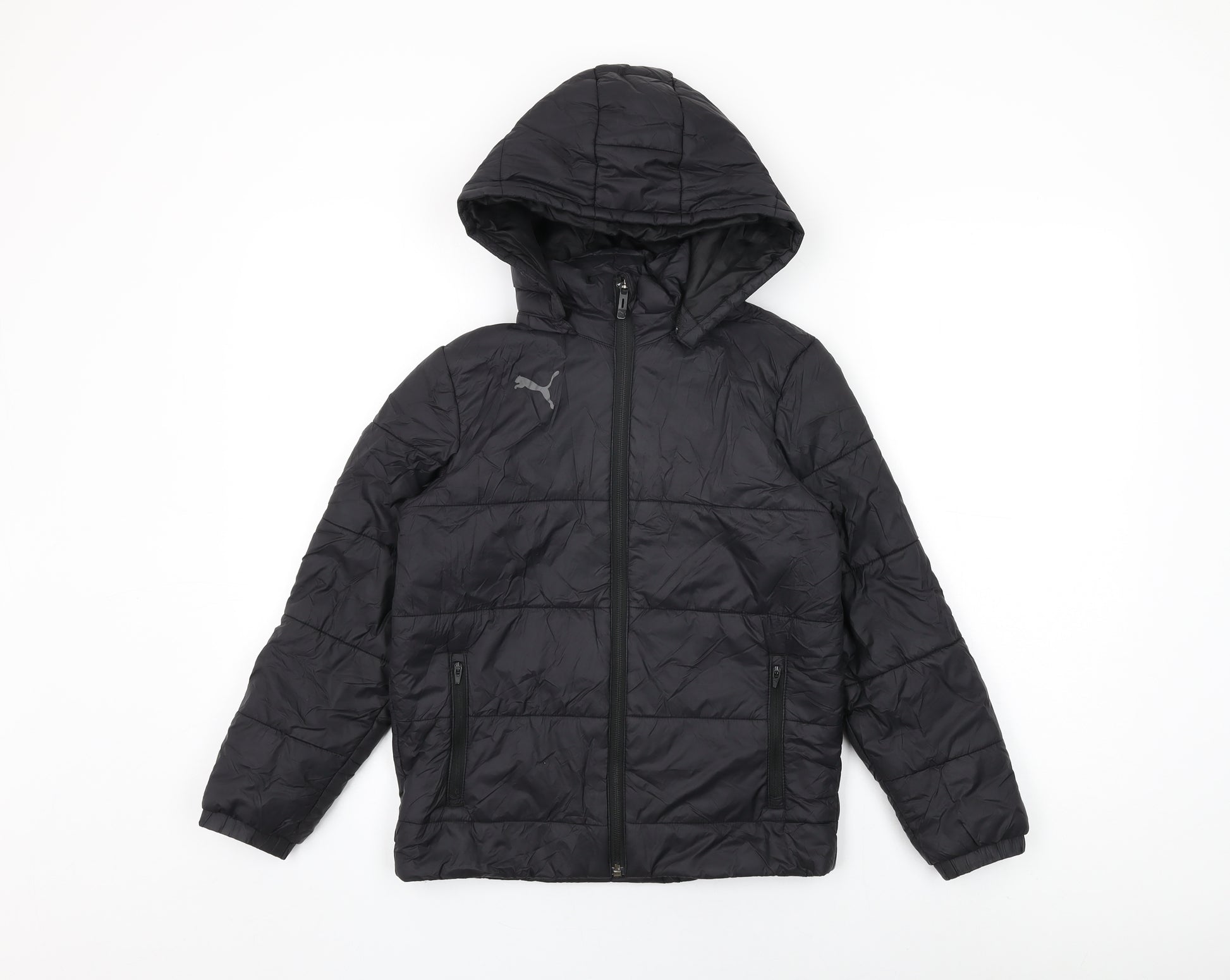 Boys Black Puffer Jacket Coat Size 9-10 Years Zip