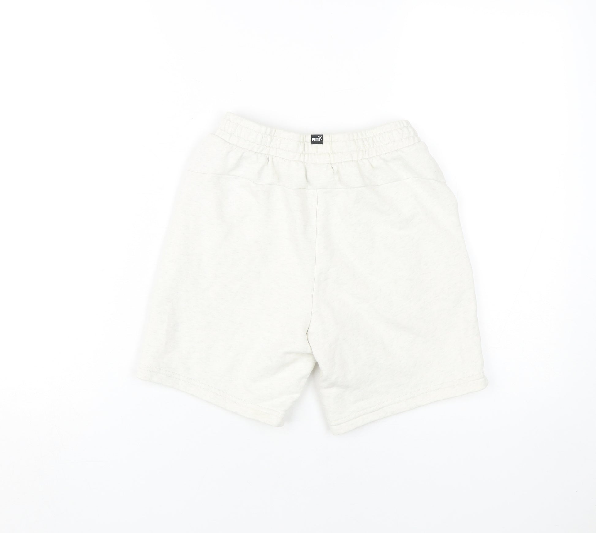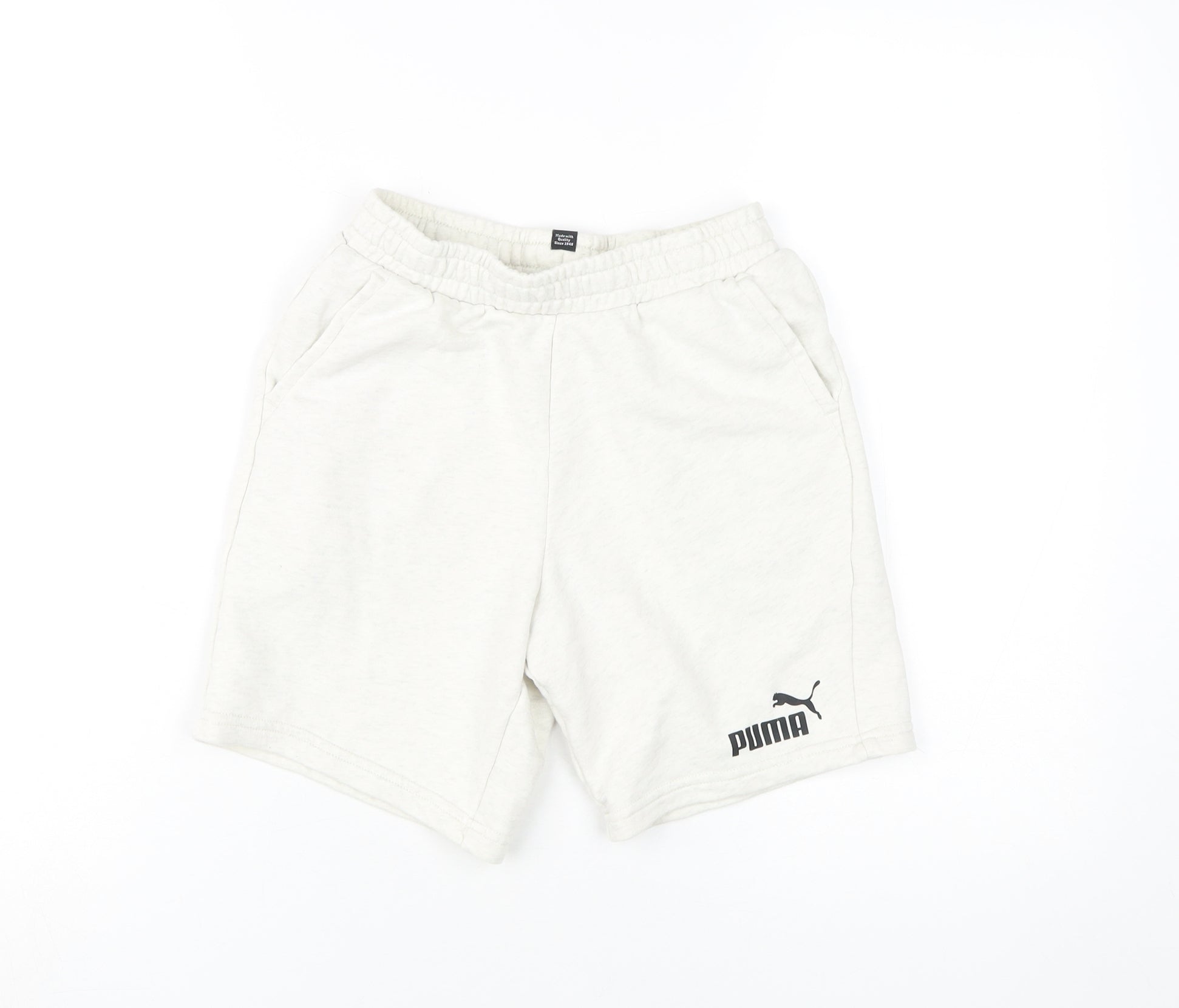 Elevate your boy's summer wardrobe with these stylish and comfortable Puma sweat shorts. Designed for casual wear, these white shorts are perfect for keeping cool and trendy throughout the warmer months. Crafted from a blend of soft cotton and durable polyester, they ensure comfort and longevity. The elastic waist and drawstring closure promise a secure and adjustable fit, making them an ideal choice for active youngsters. Featuring a regular fit and flat front, they combine classic style with modern convenience. With a no pattern design, these shorts can be easily paired with various tops, making them a versatile addition to any outfit. Whether for playtime or relaxed outings, their machine washable nature ensures easy care. These shorts, complete with original sales tags, are in excellent condition, promising a fresh, unworn feel. Get ready for summer adventures with these essential Puma shorts, ideal for casual occasions and effortlessly stylish looks.