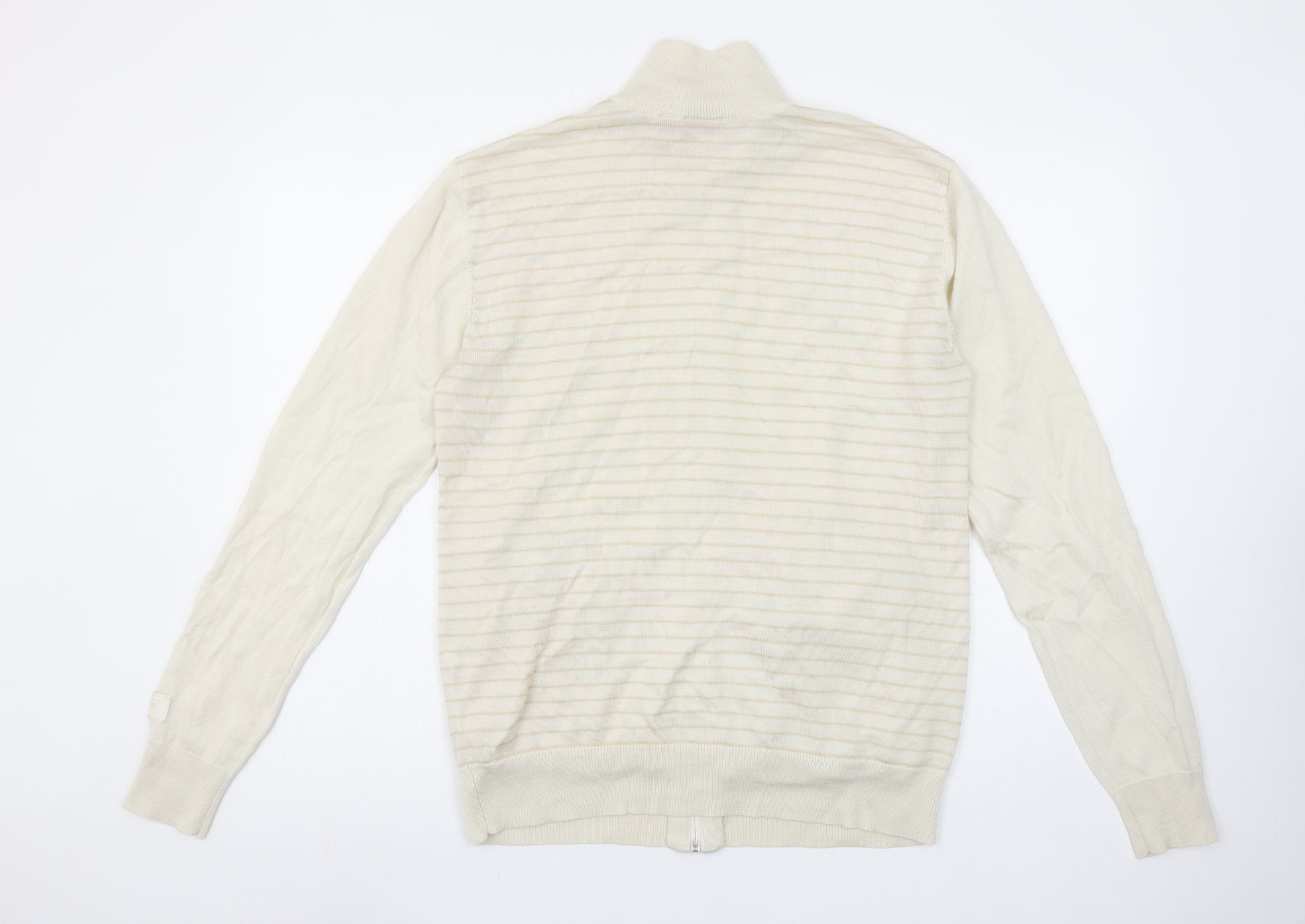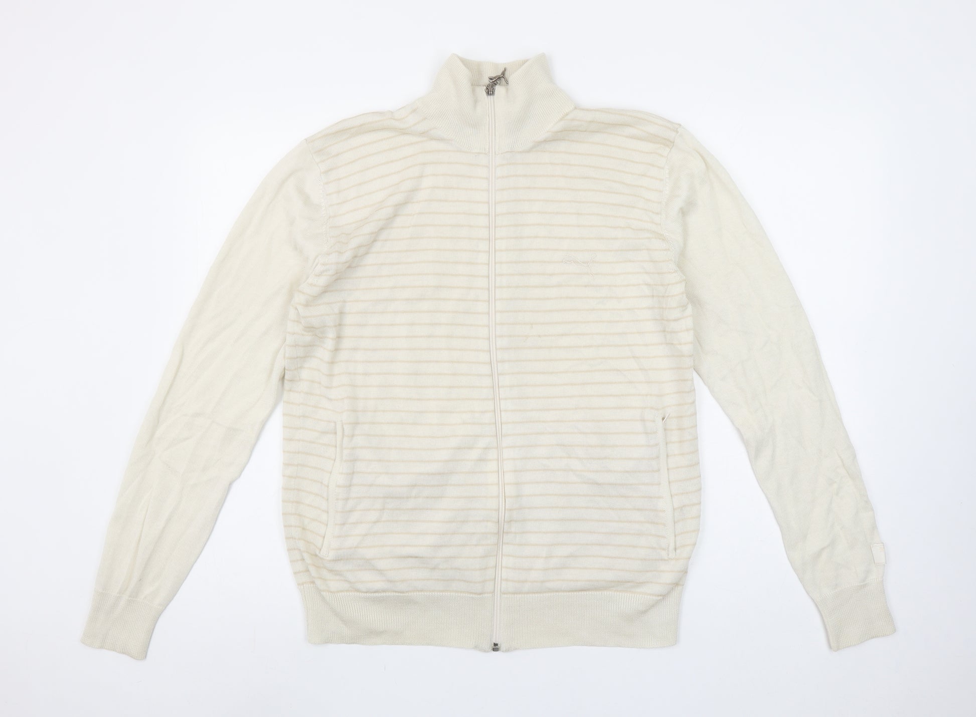 Puma Men Beige Striped Full Zip High Neck Cotton Jumper L