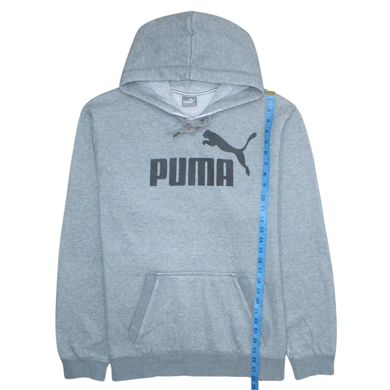 Step up your casual wardrobe with this classic Puma men’s grey pullover hoodie. Designed for comfort, this hoodie offers a relaxed fit perfect for everyday wear or sports activities. Crafted from a soft and breathable cotton-polyester fleece blend, it ensures warmth without feeling heavy, making it ideal for autumn, spring, and winter seasons. The standout feature is the bold Puma logo across the chest, delivering effortless athletic style synonymous with the brand. The hoodie includes a drawstring closure on the hood for adjustable coverage and a large front kangaroo pocket for convenience and relaxed styling. Its crew neckline and ribbed cuffs provide a secure yet comfortable fit that retains shape over time. Lined for extra softness, this hoodie blends comfort, practicality, and sporty charm perfectly. Suitable for gym sessions, running, football practice, or simply lounging at home, it transitions easily from workout to streetwear. Machine washable for easy garment care, it maintains its colour and structure even after multiple washes. With excellent condition and minimal signs of wear, this premium-quality hoodie remains stylish and durable. Whether dressing for comfort or layering for outdoor activities, this versatile Puma sweatshirt delivers both performance and design appeal. Get ready to enjoy superior comfort, iconic branding, and enduring quality with this timeless grey pullover hoodie. Perfect for men who value fashion and function in equal measure, this Puma sweatshirt is a go-to essential for both sport and leisure.
